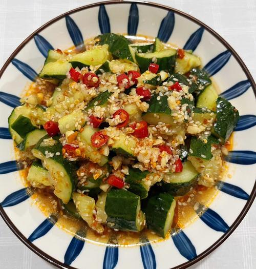 这道凉拌黄瓜不仅口感清爽,而且富含维生素C,对于美白、抗氧化都有很好的效果。而且,黄瓜的纤维素含量也很高,可以帮助消化,减肥养颜的效果非常好。