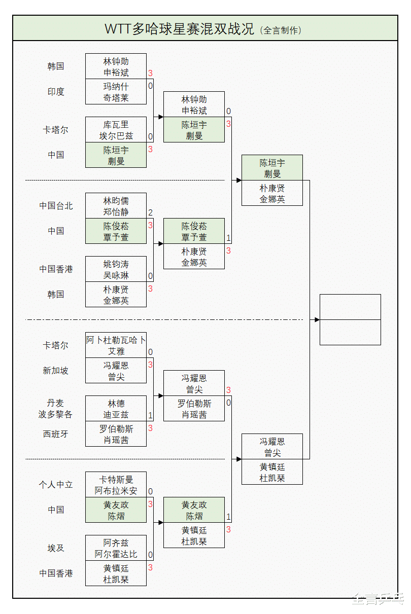 18:20,陈垣宇/蒯曼VS朴康贤/金娜英(韩国);