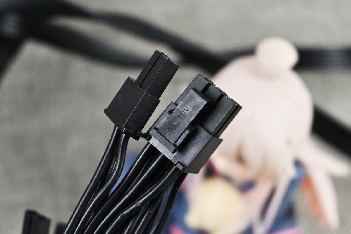 值得肯定的是,华夏GW-850HC的线材插头均有UL安全标识,在端子细节做工上也比较到位,在主流直出线材产品中是比较踏实的;相较于其他+12V线材,12V-2X6线径明显较粗;电源本身配备1条1D口+2SATA供电接口比较少,对于日常装机SSD+HDD来说绰绰有余,如果有多组硬盘甚至光驱需求的老派玩家,和上文说的一样,建议加钱吧~