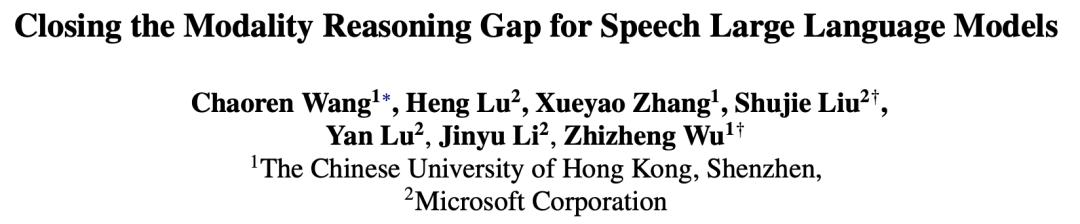 论文题目: Closing the Modality Reasoning Gap for Speech Large Language Models