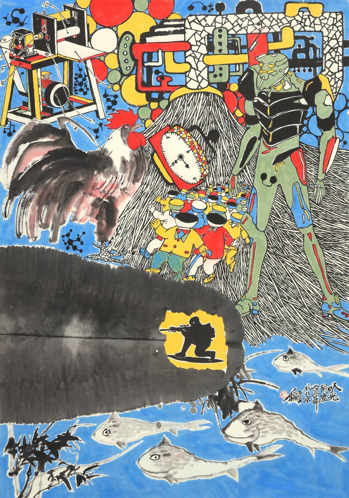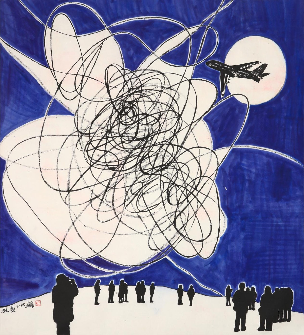(何继《非常时刻》.纸本设色.250x187cm.2025)
