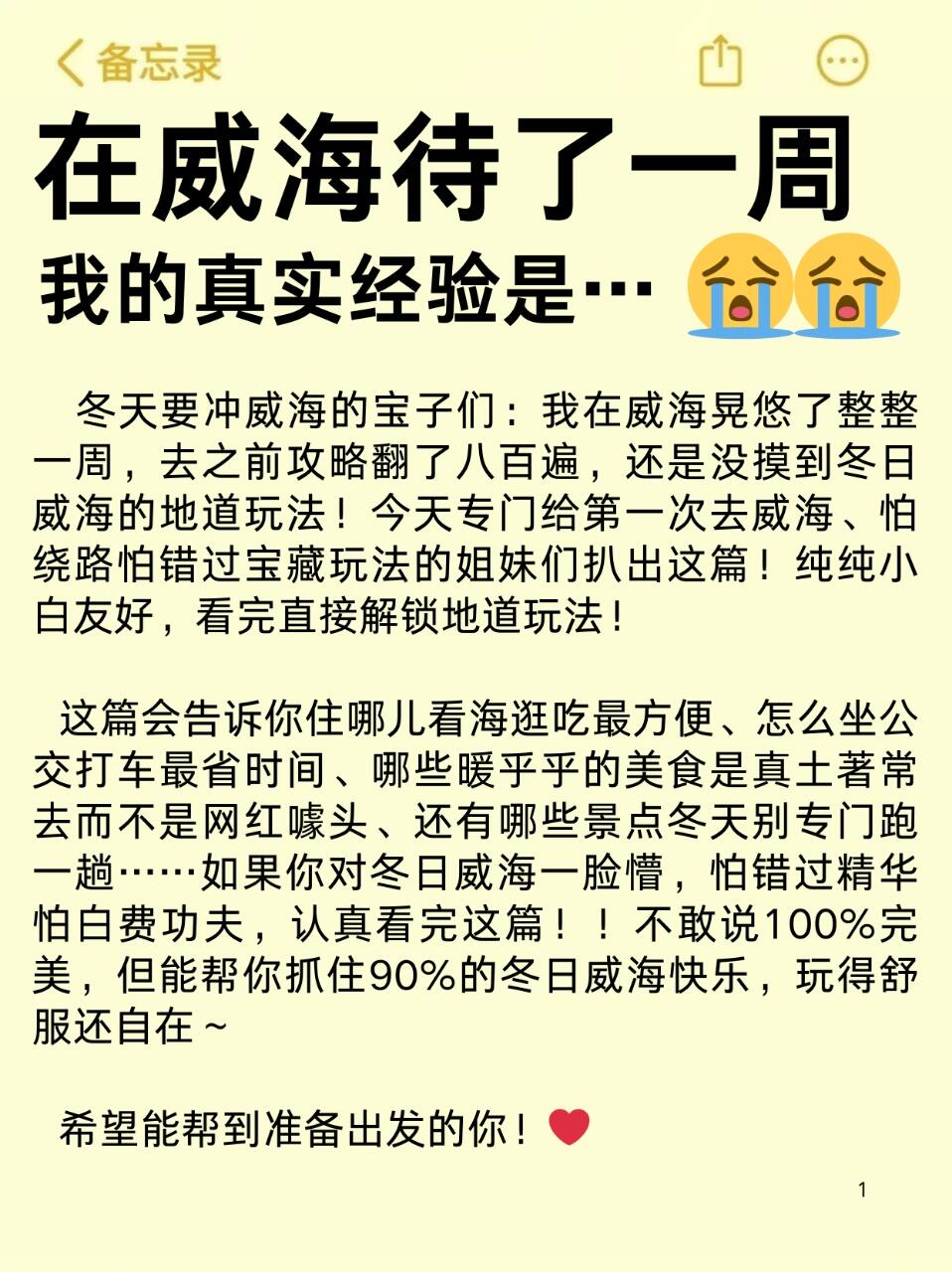 冬天想去威海的姐妹们看过来啦‼️威海不适合临时起意来玩!需要提前做好攻略📃,熬夜整理了3天2夜的旅游攻略,希望能帮助准备来威海的姐妹!!