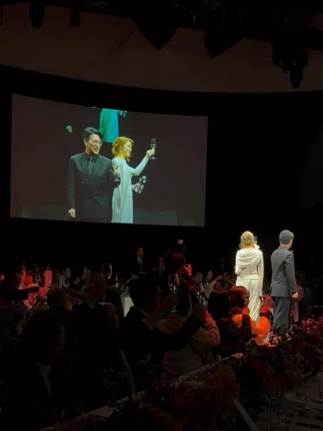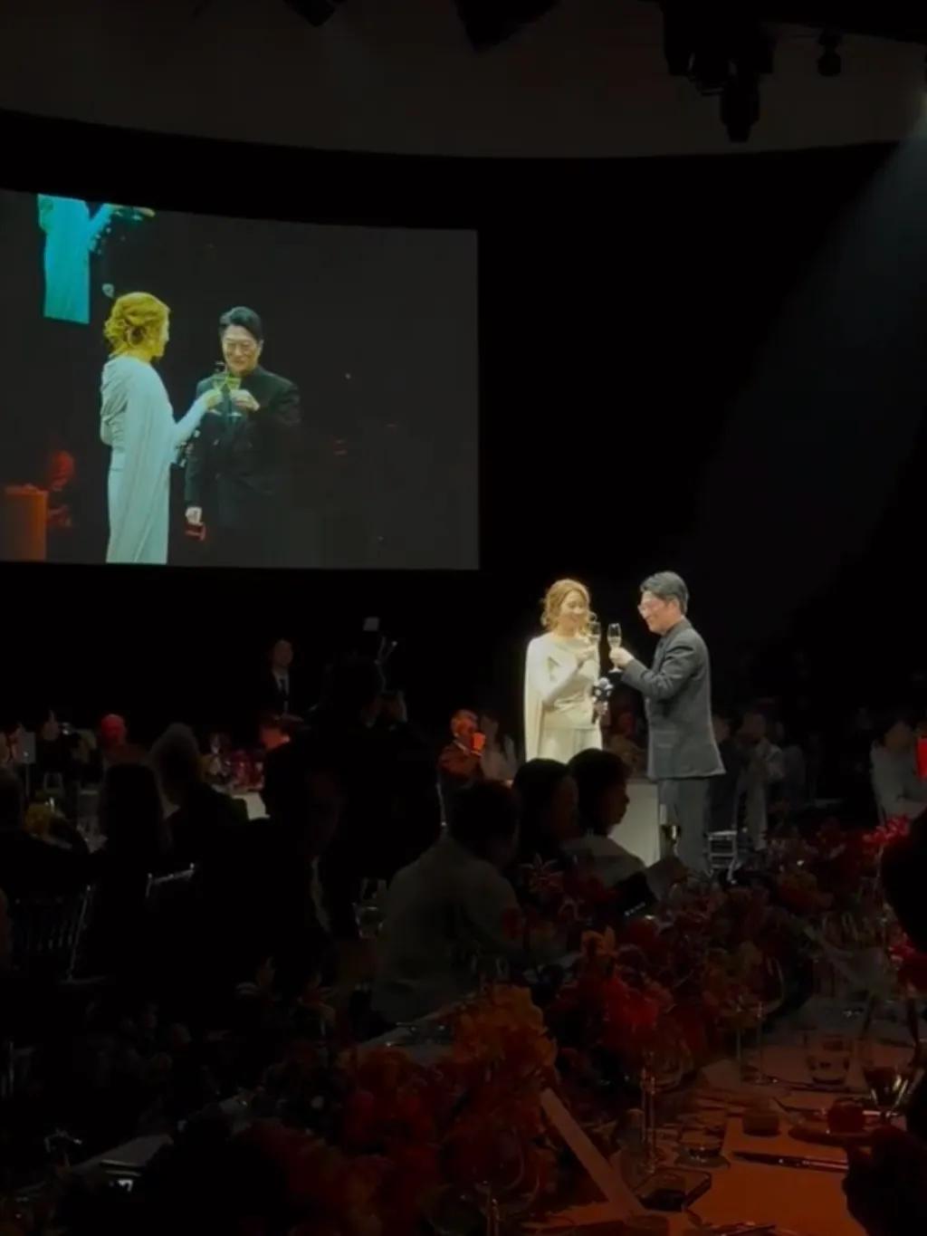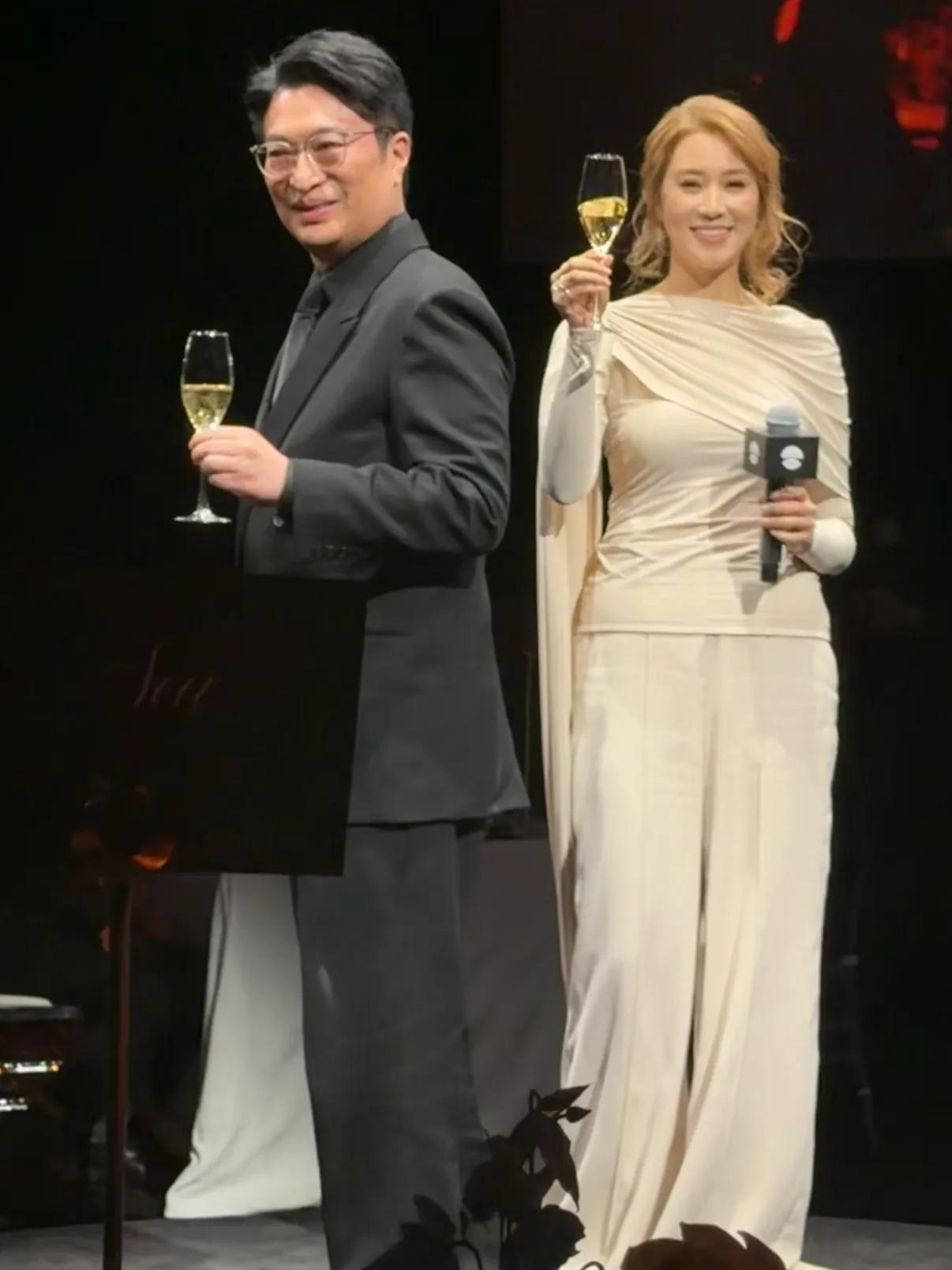 夫妇两人面带笑容同框,在舞台中间举着酒杯向来宾们一起庆祝,恩爱十足。48岁的徐子淇状态看起来也很好,颜值在线,气色红润,珠圆玉润的感觉,越来越显贵气。而且不用力做造型的时候感觉更美更有气质。