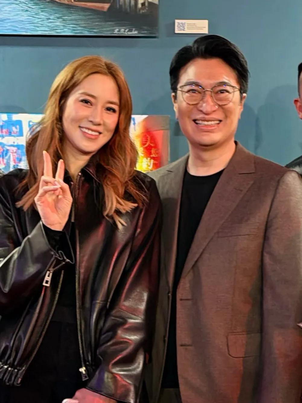 还有网友晒出近日和徐子淇李家诚在恒基50周年庆员工嘉年华的合影。李家诚面带灿烂笑容,徐子淇对镜开心比剪刀手,夫妇两人都好开心。徐子淇穿黑色皮衣搭配黑色长裤,休闲装打扮酷范十足,这个风格也很美呢。