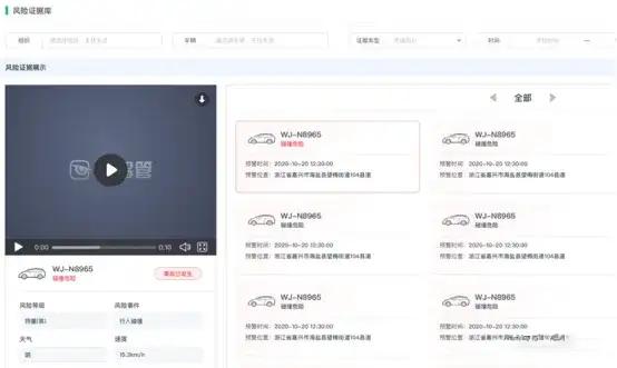 主动安全报表中的风险证据库,可查看历史主动安全视频数据。