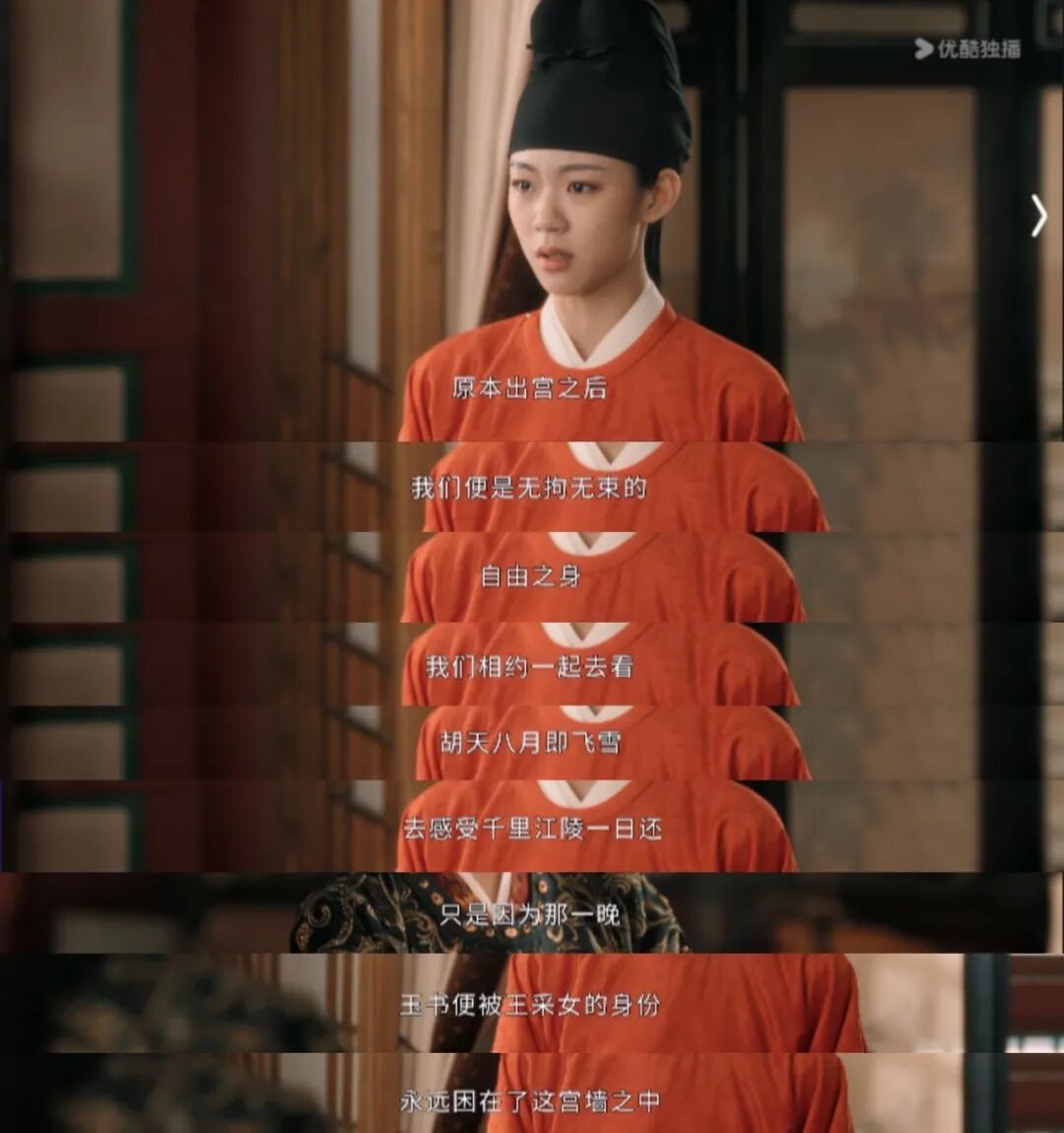 包括令人惊喜的是,对于中青年女性近年开始讨论与审视的、个人成长中所面临的“陷阱时刻”,主创们也透过宫禁这一极端危险环境,更直观地呈现。比较典型的就是整部剧中,通过玉书、韦贤妃、淑妃、董才人等等妃嫔的前后遭遇,将“荣华富贵”、“宠爱之名”等让女性放弃独立自主性的诱惑中所暗藏的沉重枷锁,持续揭示。