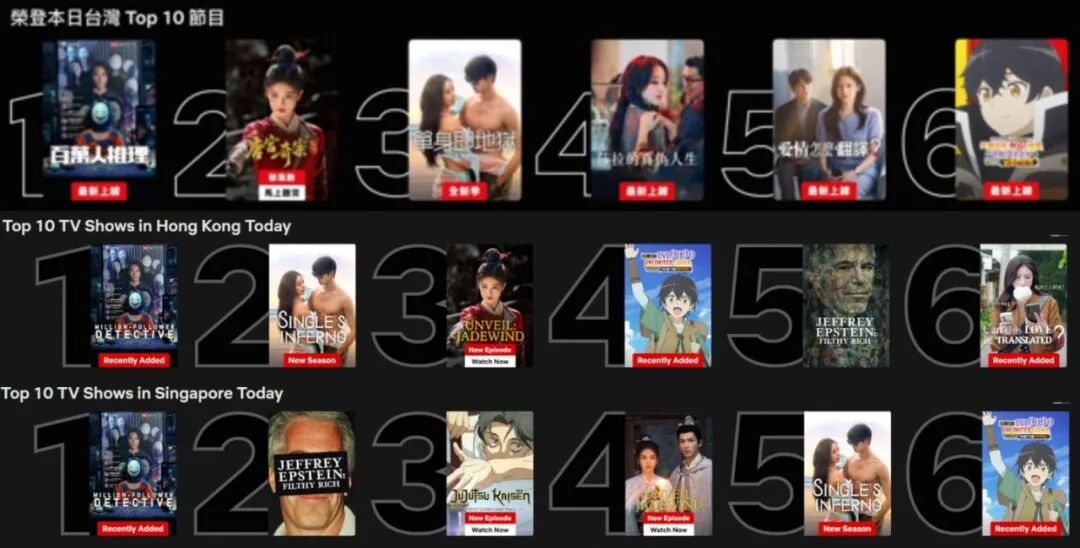 《唐宫奇案》在Netflix台湾地区、香港地区、新加坡连续三周登上周榜TOP10。