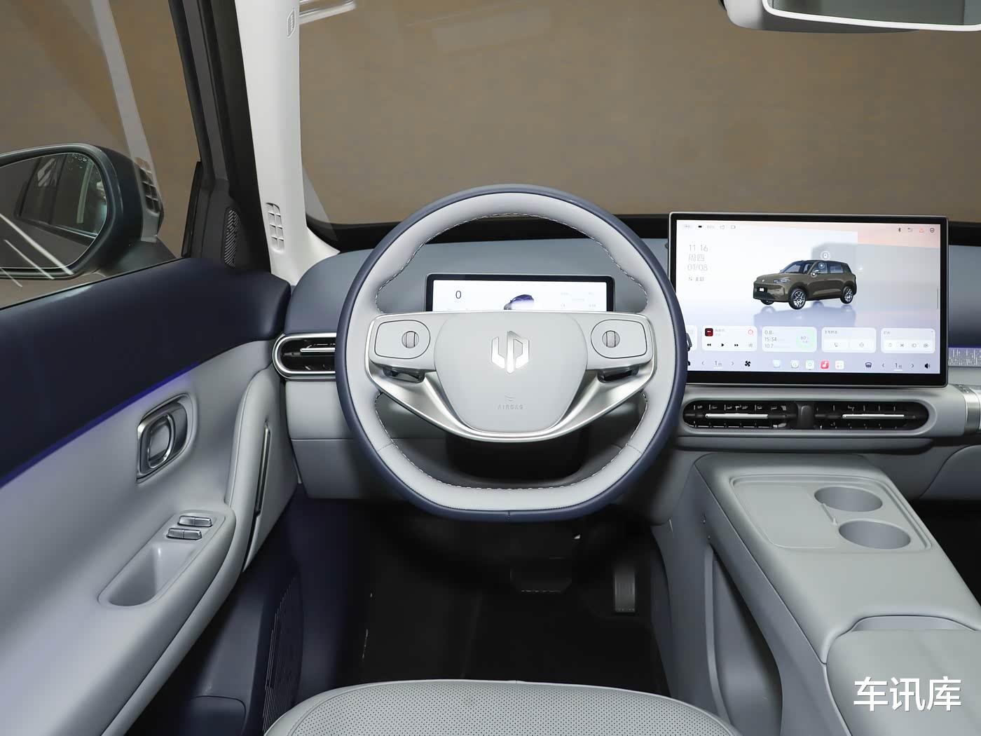 整个中控台的造型也是相当简洁,搭载了一块14.6英寸的悬浮式中控屏,常用功能按键全部集中到屏幕当中,再加上8.8英寸的全液晶仪表盘,可谓是科技感十足。前排扶手台设计的比较平整,换挡方式为怀挡设计,方向盘则是家族式的双幅式平底方向盘。不得不说,作为一款入门级的家用小车,零跑A10这套内饰还是很精致的。虽然具体的车辆配置还没有公布,但是从实拍图来看,该车将搭载激光雷达,并且配备AI“超级小零”等功能,预计会有不错的“智能”体验。