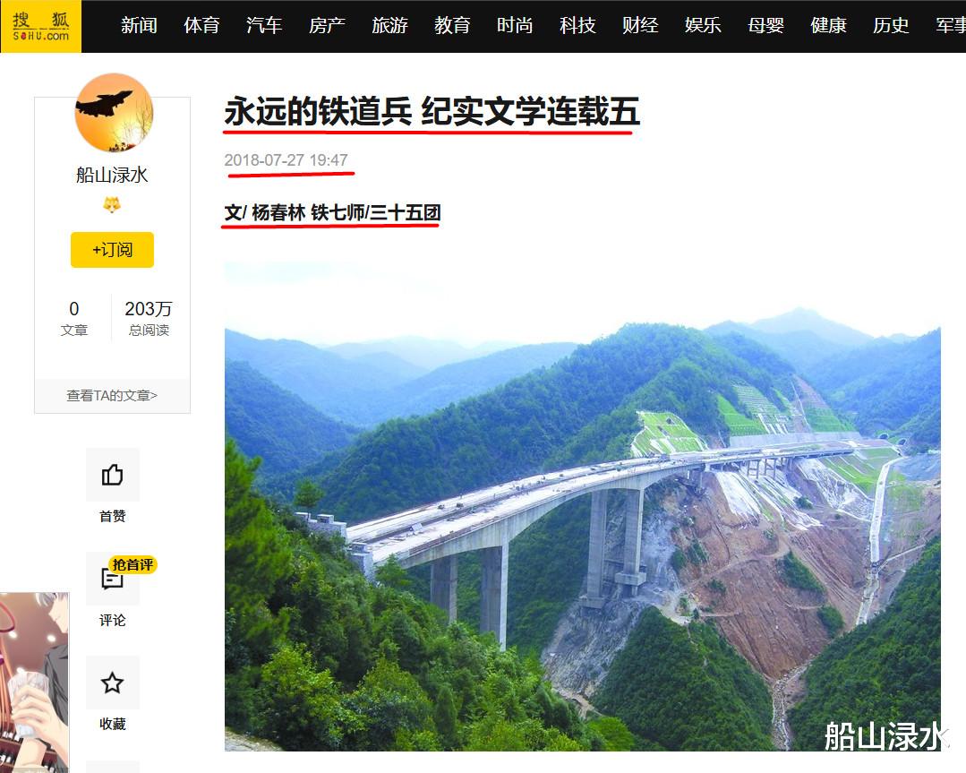 《永远的铁道兵 纪实文学连载五》 (2018-07-27 19:47)。有截图为证: