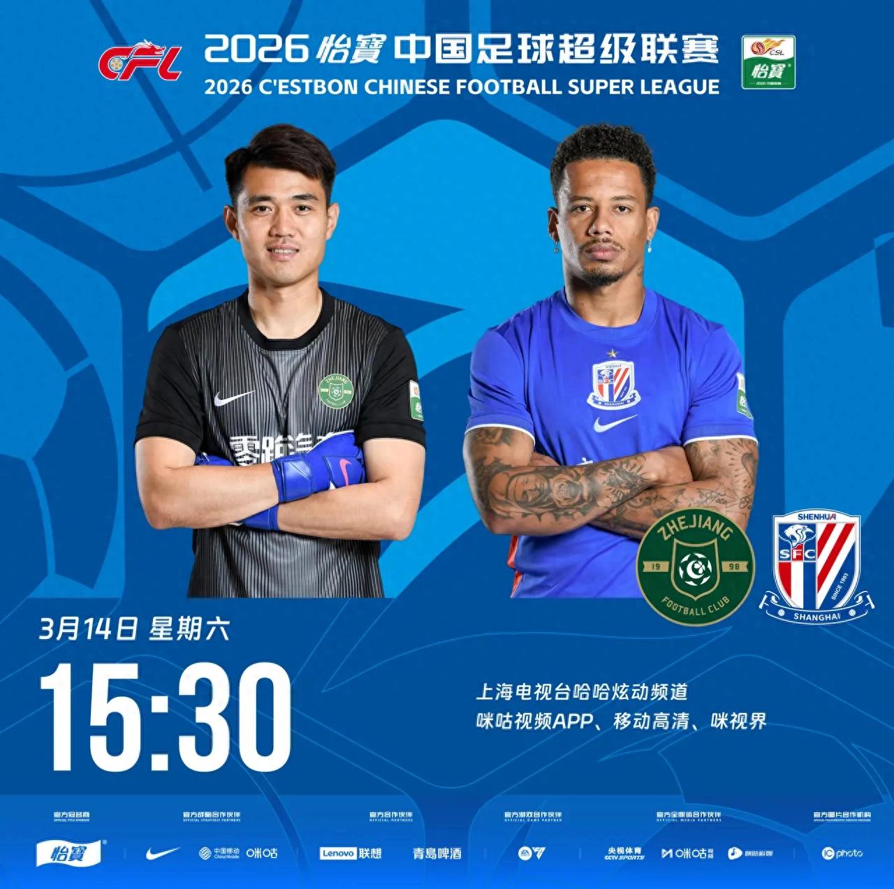 3月14日15:30,中超第二轮浙江队主场迎战上海申花,赛前双方首发阵容正式出炉,一边是阵容齐整剑指积分转正,一边是伤病缠身艰难客场作战,本场对决充满看点与悬念。