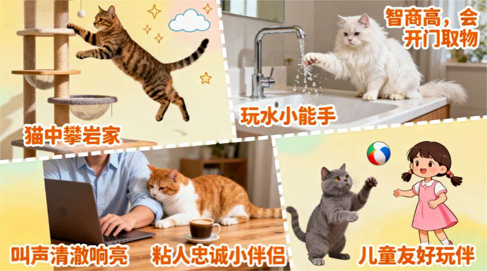 (二)行为特点具有极强的 “问题解决能力”,面对封闭的抽屉、柜子,会通过抓挠、撬动等方式尝试打开;听到水流声会立刻循声而至,甚至会用爪子拍打水面取乐。运动神经极为发达,动作敏捷迅速,捕猎本能强烈,会追逐家中的昆虫、小球等移动物体。自我清洁意识强,会频繁用舌头梳理毛发,但因被毛过长,仍需主人辅助打理。