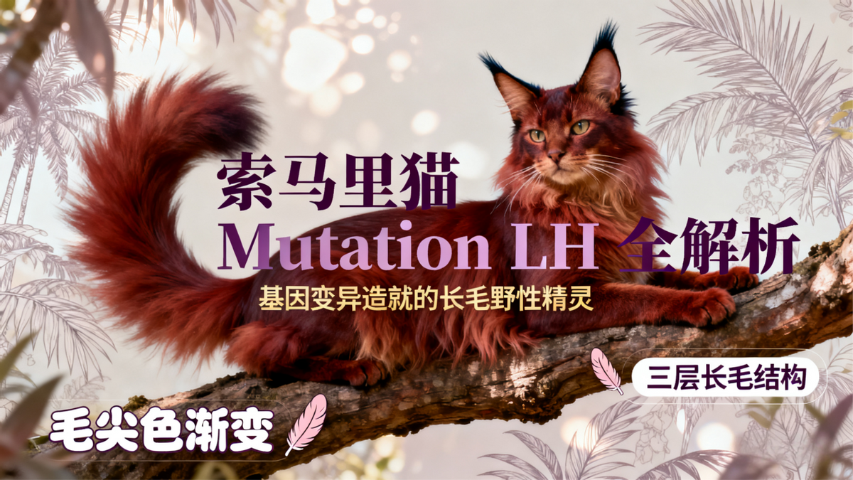 索马里猫 Mutation LH(学名:Somali Mutation Longhair)是 20 世纪中期由阿比西尼亚猫基因自然突变诞生的长毛猫种,“Mutation LH” 精准概括其单一基因显性突变 + 原生长毛被毛的核心特质,堪称猫界 “基因变异造就的意外之美”。其起源可追溯至 20 世纪 50 年代的欧美地区,当时繁育者在纯种阿比西尼亚猫的繁育过程中,频繁发现部分幼崽天生拥有更长的被毛,最初这些 “异类” 因不符合短毛品种标准被视为 “繁育失误”,甚至被淘汰出纯种繁育体系。