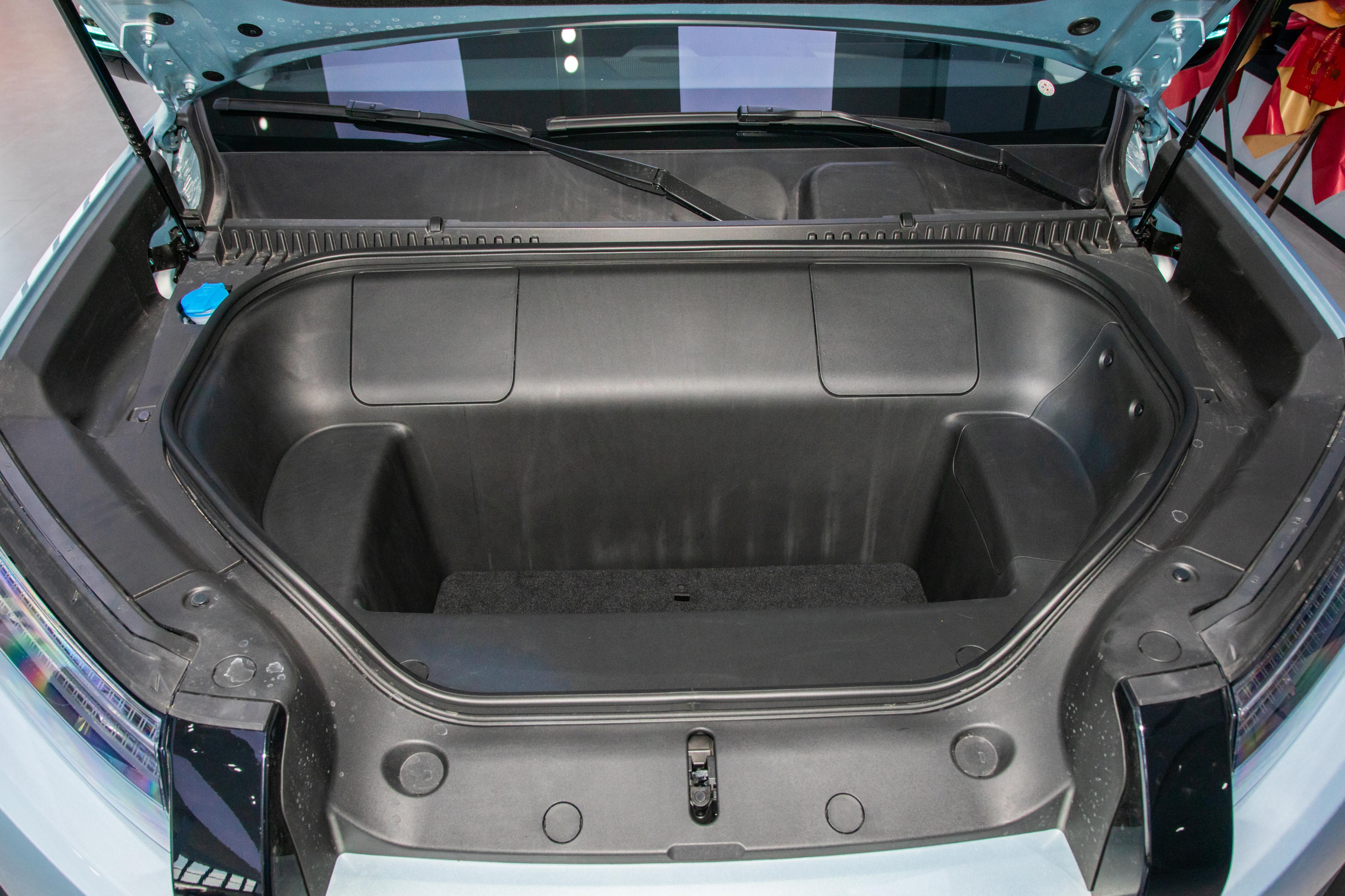 移步后排,在前排保持正常驾驶坐姿的基础上,后排腿部空间大约有两拳出头,放一个实际的人坐进去,腿部不会顶到前排座椅背面,头顶也还有将近一拳的余量。整体后排乘坐体验在A级SUV里算是表现均衡的,坐三个成年人会有点局促,但两人乘坐完全没问题。后排座椅支持40:60比例放倒,实际拉货或者装载行李的时候灵活度不错。前部行李舱容积151L,这个尺寸的前备厢对于日常出行来说很实用,可以放一些怕压的物品或者充电配件。