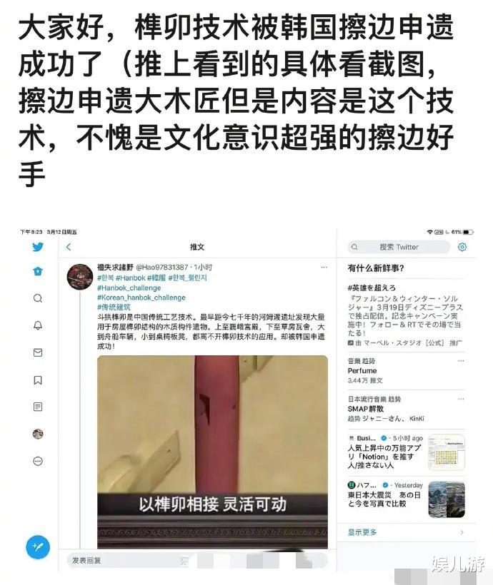 近日,一则“我国榫卯技术被韩国申遗成功”的消息让不少中国网友愤怒了并登上热搜。有网友在讨论“韩国成功申遗了哪些和中国有关的文化”时,突然发现我国的榫卯技术被韩国申遗成功,而且还是偷换概念,将榫卯技术以“大木匠”的名义申遗!