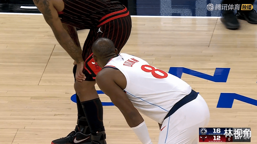 第三节开始,快船连中两记三分,一波6-2直接打停了公牛,公牛很谨慎,可不想让快船外线回暖。
