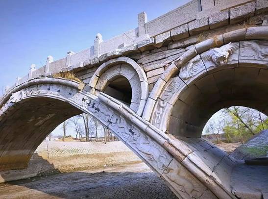 赵州桥:位于河北省石家庄市赵县洨河之上,是中国现存最早、保存最完整的古代石拱桥,建于隋朝(公元595-605年),总长50.82米,宽9.6米,造型优美,比例协调,采用石拱结构,体现了古代工匠的智慧,见证了隋朝的繁荣。