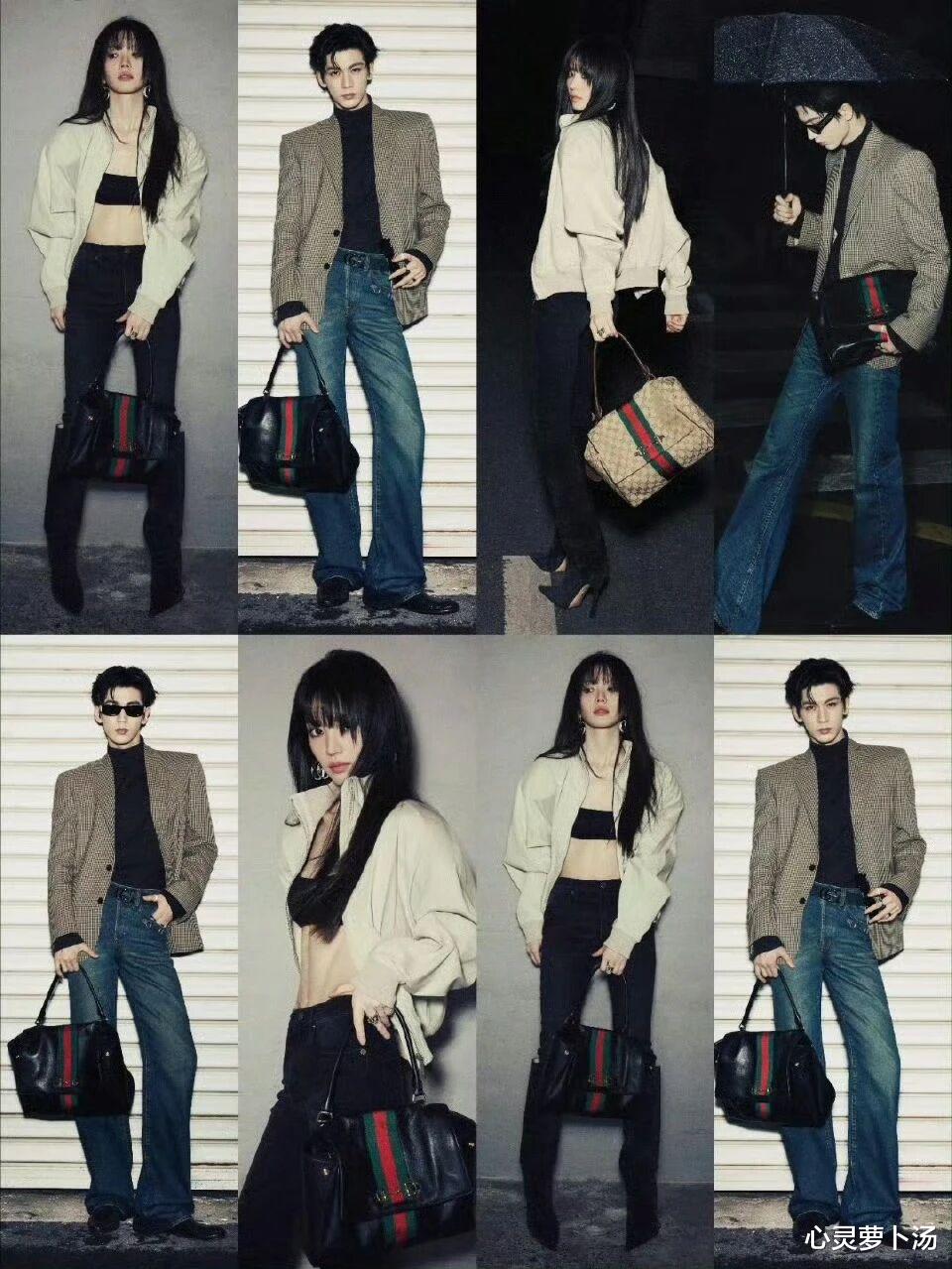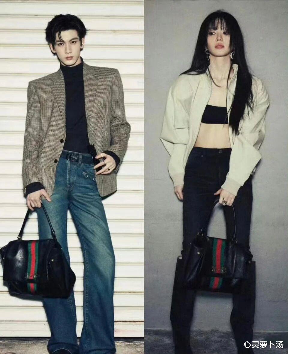 网友们自发扒出了两组大片里的各种细节:两人镜头里的眼神方向刚好形成呼应,整体的构图色调高度统一,就连手里拿的品牌手袋,都能被解读出暗戳戳的搭配巧思。