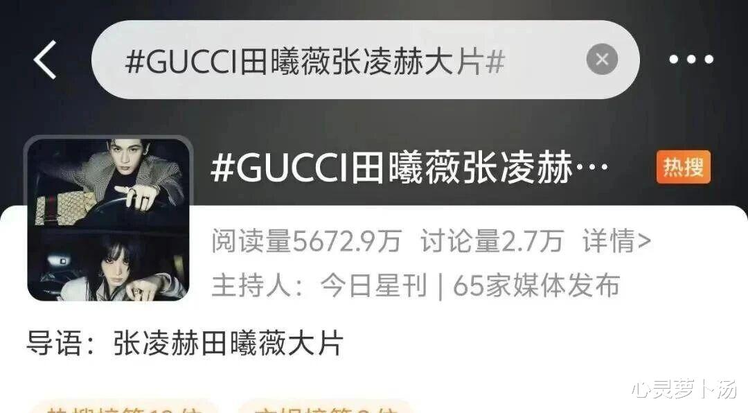 #张凌赫田曦薇#Gucci豪门姐弟的话题一夜之间冲上热搜前排,相关话题阅读量轻松破亿,品牌声量更是实现了大幅暴涨。