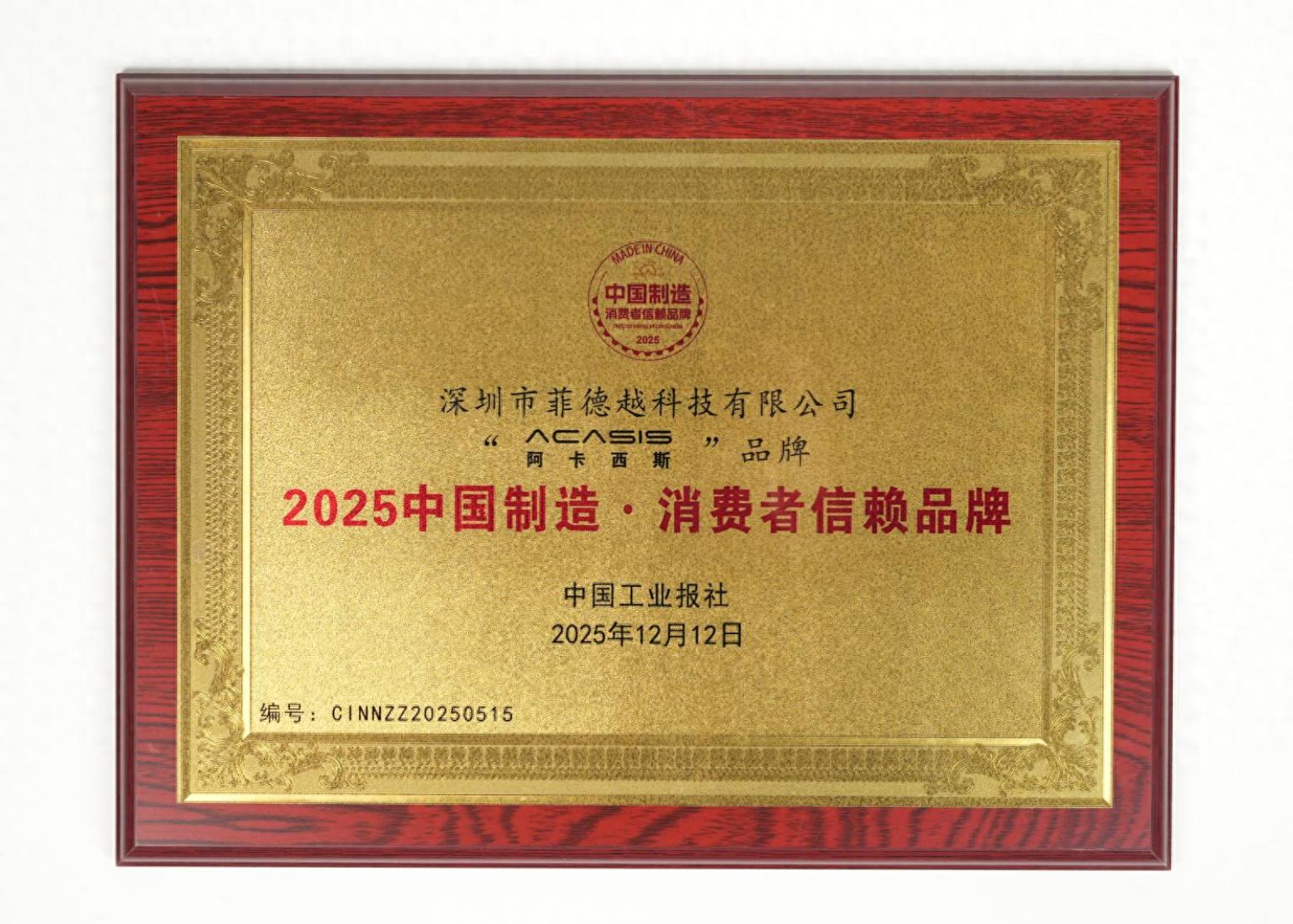 2025年12月26日,深圳传来喜讯。在中国工业报社主办的"2025中国制造·消费者信赖品牌"推介活动中,深圳市菲德越科技有限公司旗下的ACASIS阿卡西斯品牌成功入选,斩获这一国家级殊荣。