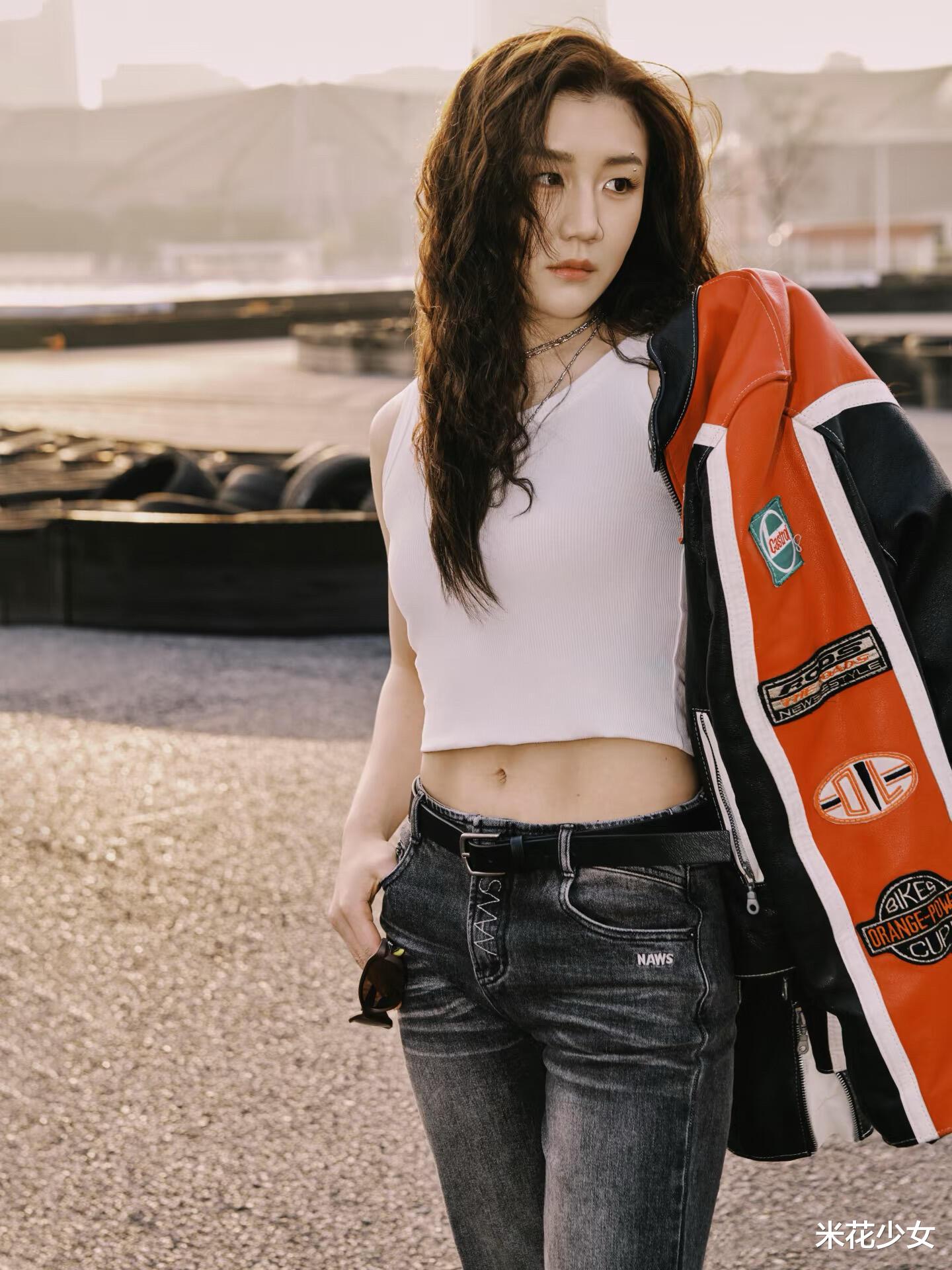 小黄毛,皮上衣,加上低腰牛仔裤,这往往是呼啸于街头的机车少年最爱的穿搭,透露着狂野和不羁,不过当奥运冠军陈梦穿上这一身,就体现出来完全不同的味道。