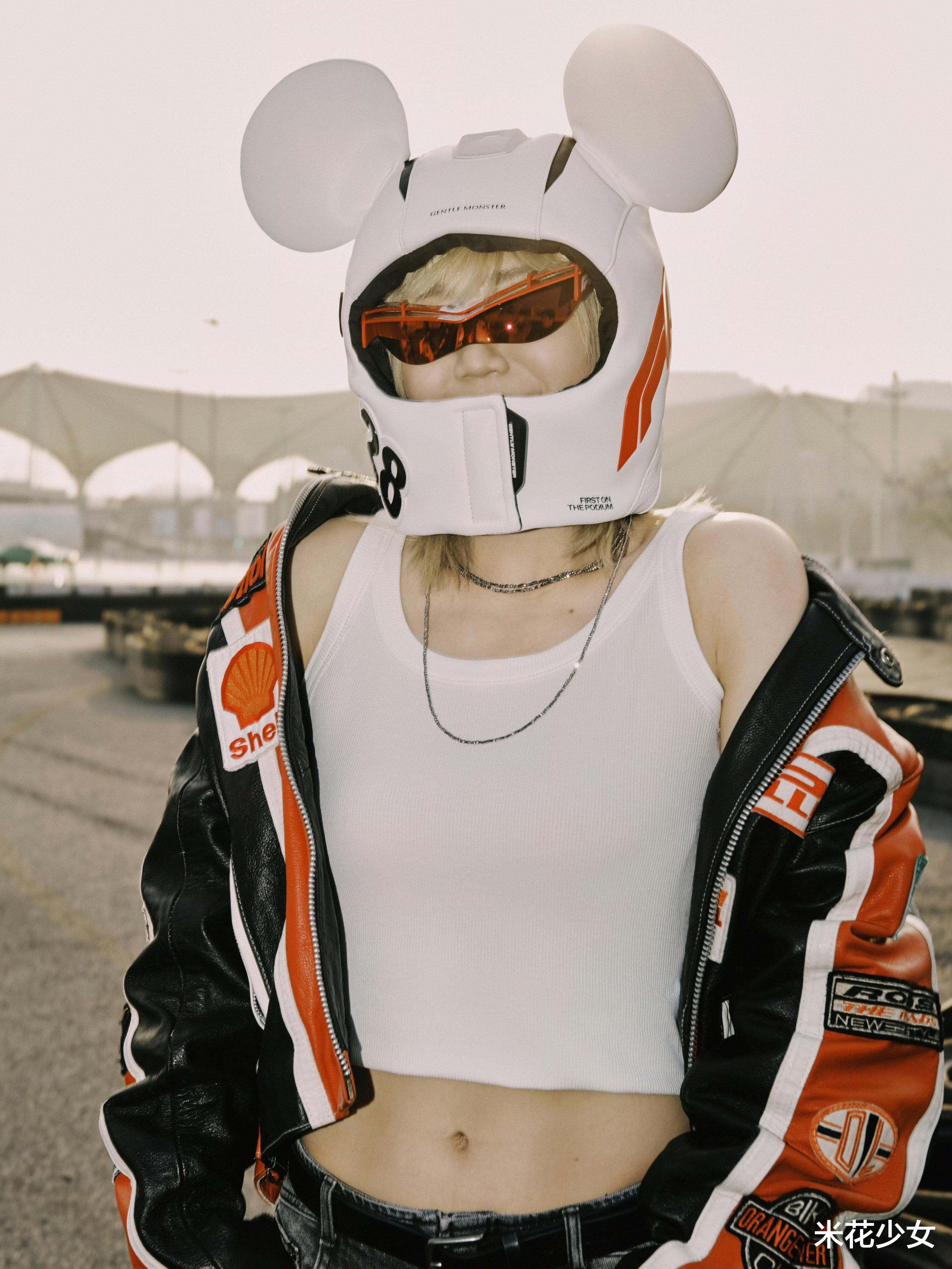 除了这一身机车服,陈梦还尝试了黑衣皮衣,皮裤,搭配上黑色墨镜,颇有未来战士的即视感。