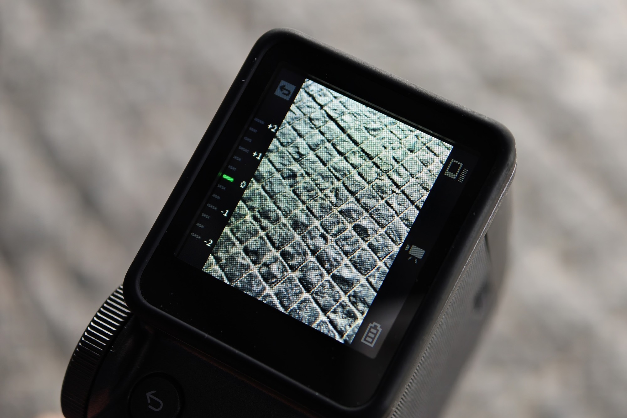 Evo Cinema的机身背面拥有一块1.54英寸的显示屏,用来取景或操作相机时使用。配合屏幕下的功能键,用户可以快速完成相机功能设置、回放照片等操作,整体来说,Evo Cinema的操作并不复杂,用户在拿到产品后可以进行快速上手。