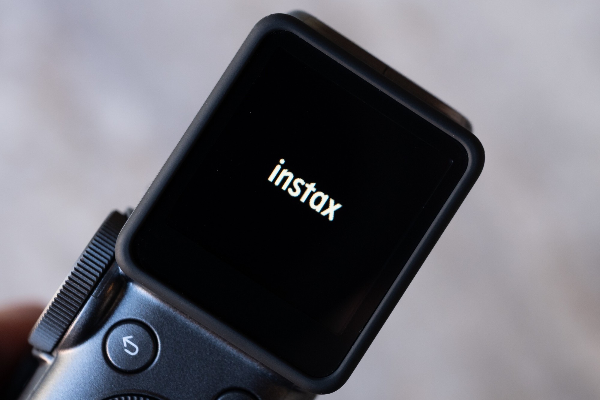 Evo Cinema的大部分操作按键主要集中在机身侧面,另一侧则是用于安装instax mini相纸的舱门。除了电源开关、拍摄模式切换拨杆、变焦杆以及出片拨杆外,Evo Cinema还配备了一枚“年代效果转盘”用户可以通过旋转这枚转盘来切换不同的年代效果,以实现不同的画面风格。