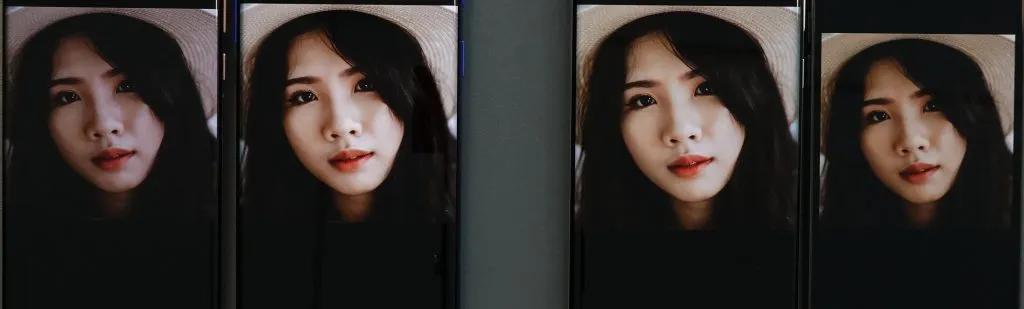 其中亮度低是核心的弊端,因为亮度低就意味着对比度差,就意味着显示不清晰,就意味着脏的感觉。(如下图所示,从左到右:华为P40 Pro、OnePlus 8 Pro、三星Galaxy Note20 Ultra 5G、苹果iPhone 12 Pro,能明显看出,当时的国产屏和三星屏的差距)