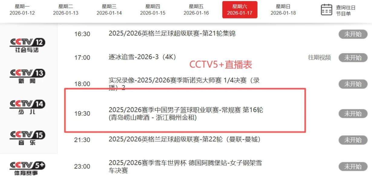 今晚CCTV5+频道有CBA的直播计划。在这5场比赛中选取了青岛男篮主场迎战浙江男篮这场比赛全程直播。