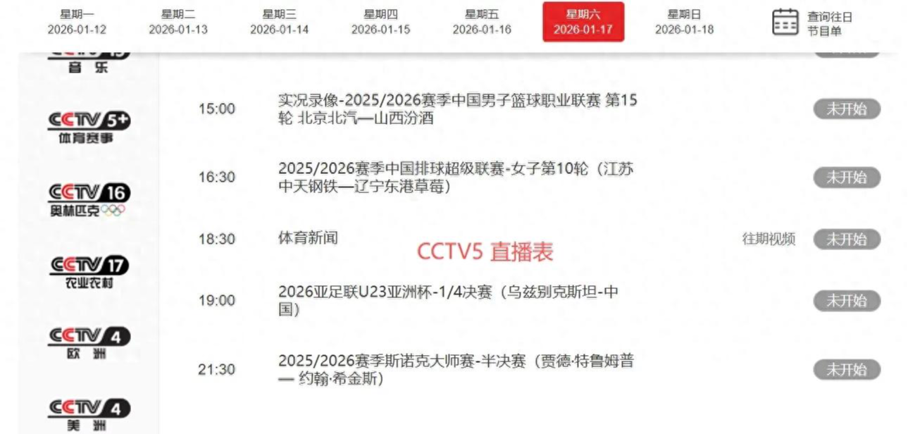 今晚CCTV5频道没有CBA直播计划。看看直播表。