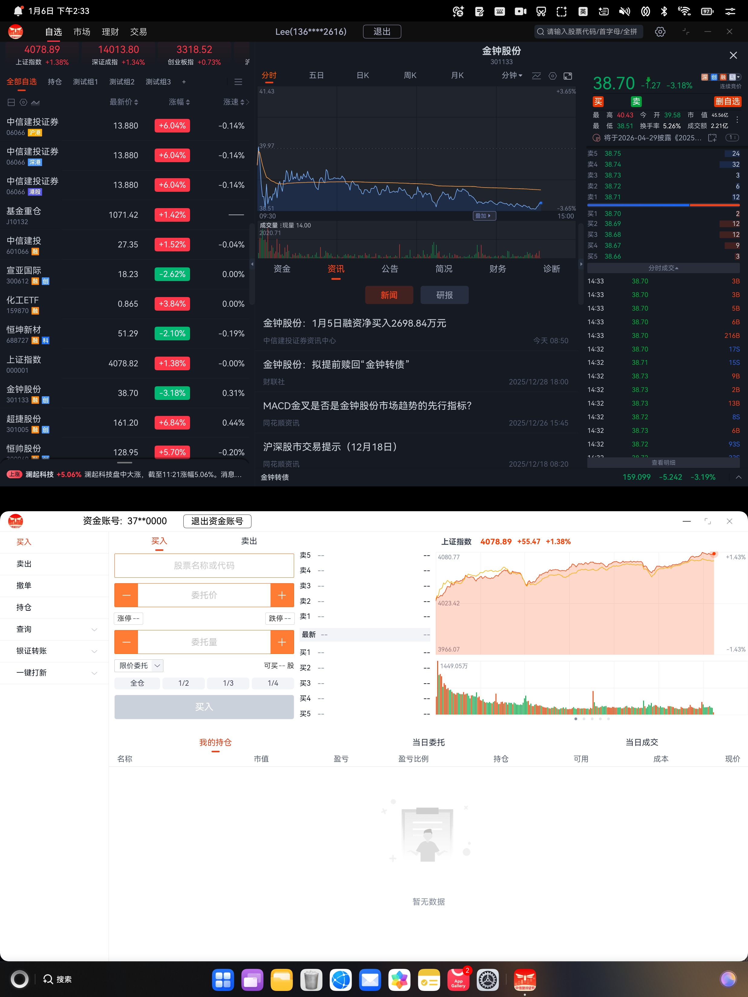 凭借成熟的自主研发技术,以及鸿蒙多端一致的全场景能力,鸿蒙版蜻蜓点金PC版在全面支持极速行情、实时资讯、股票交易、理财产品等核心服务的基础上,带来了分屏交互、多设备互联等全新体验,为广大投资者提供更加专业、高效、安全的投资体验。