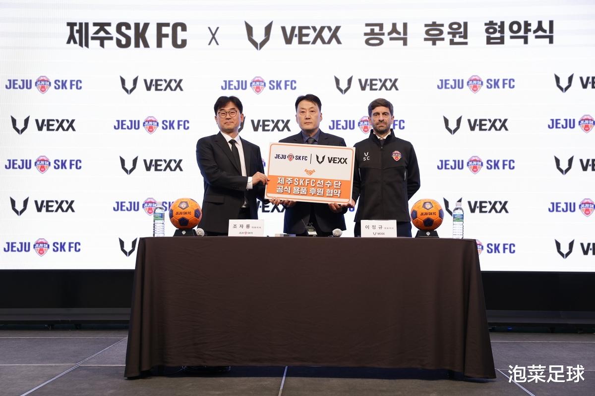 2025年,济州联合改为济州SK FC后,球队不但没有脱胎换骨,反而还差点降级。不知道是不是玄学,2026赛季,济州SK FC先是把土帅换成了洋帅重走“国际化”路线,接着又和合作多年的赞助商斐乐不再续约,选择了本土化的品牌。韩国当地时间12月29日,济州SK FC宣布,球队新赛季开始与韩国本土运动品牌V-EXX签约,合约为“3+1”,也就是说至少在2028赛季,济州的球衣都是这个国内牌子。根据合约规定,V-EXX将独家供应济州SK FC全体球员、教练组(包含青少年梯队)的比赛及训练专用服装与装备,同时双方将在联合营销、内容协作、社区贡献项目等多个领域持续开展合作。