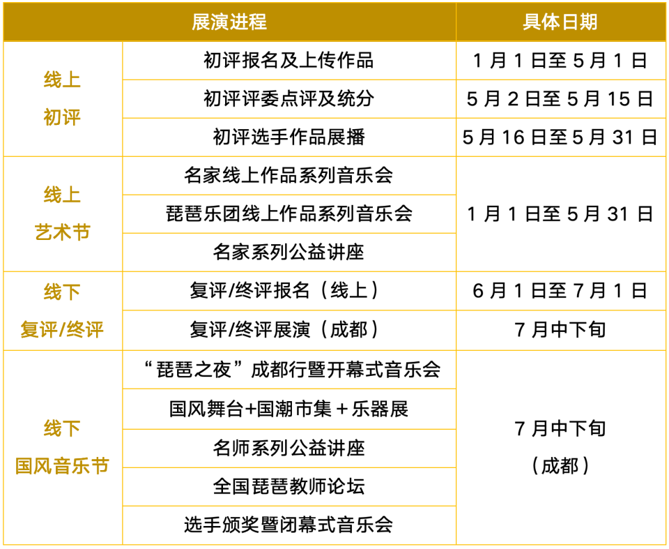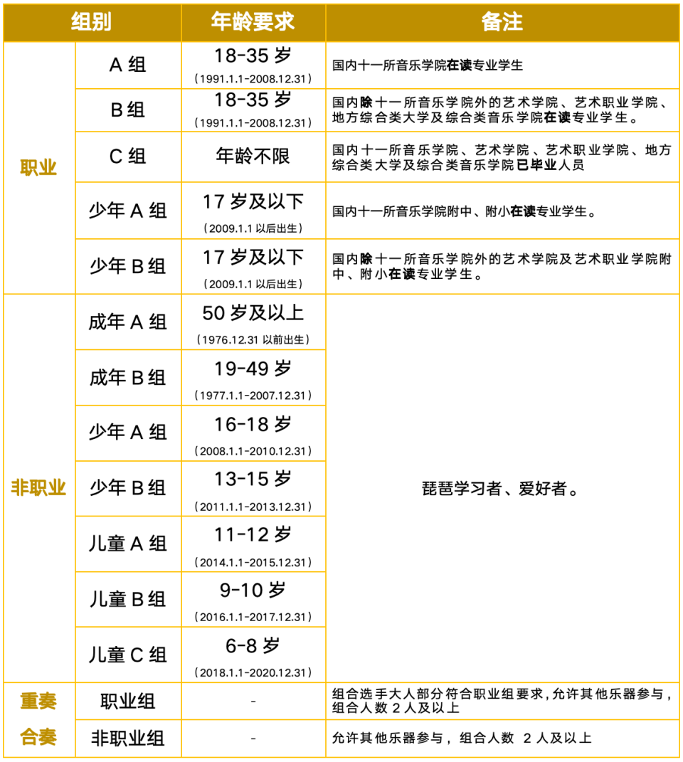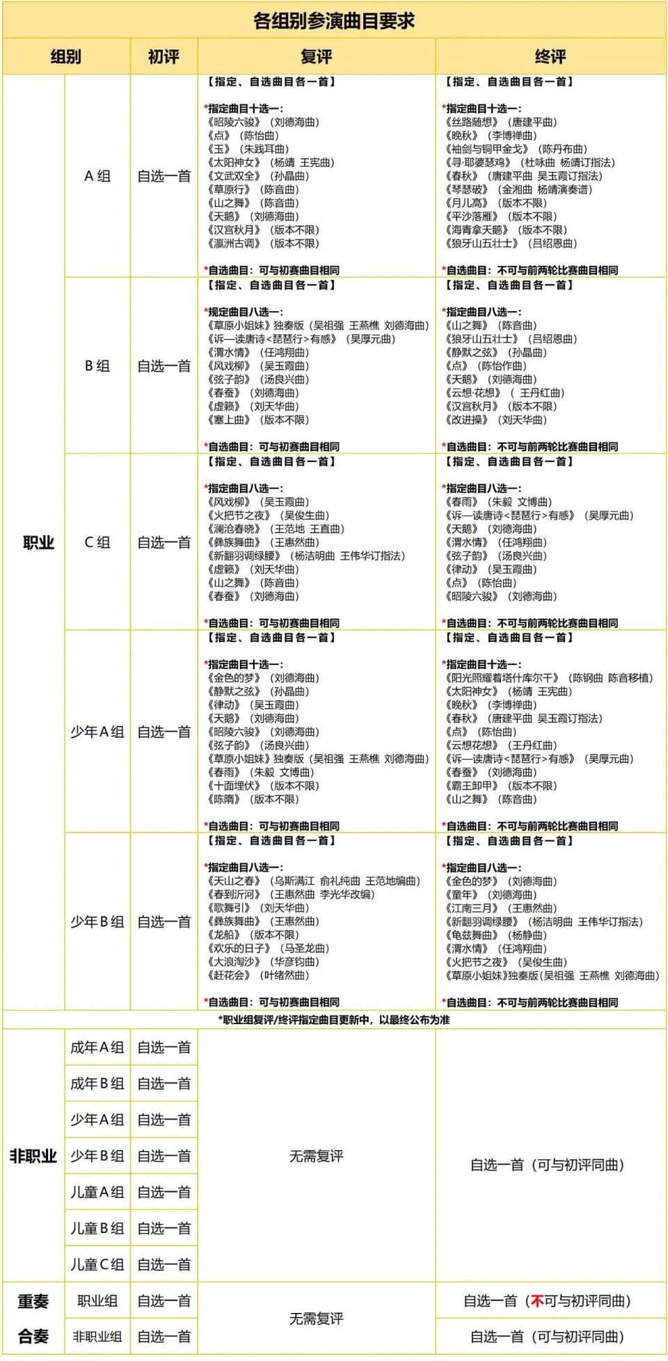 4)各组别金奖前三名含指定奖品:品牌琵琶一把。