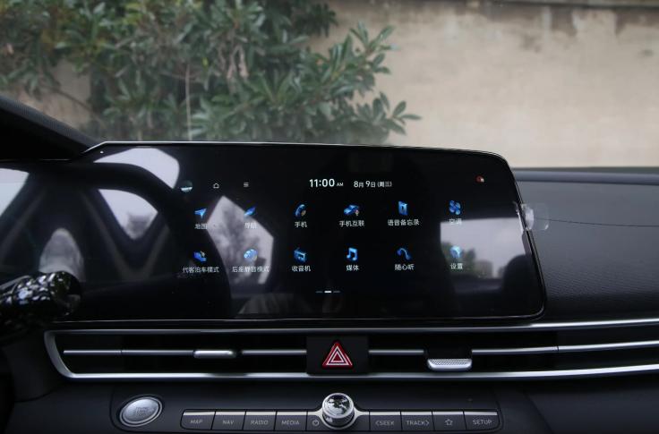 车内依旧是家族化的设计,材质方面没什么特别之处,但布局有不少亮点。整个座舱以驾驶者为中心布置,10.25英寸全液晶仪表和10.25英寸中控屏通过黑色饰板连接(低配是4.2英寸非全液晶仪表+8英寸中控屏),形成了双联屏的视觉效果,加之中控台向驾驶席倾斜10°的设计,不仅方便驾驶者操作,也带来了较为浓厚的科技沉浸感。虽然硬件是有了,但软件体验并不乐观,实测对语音识别的准确率不算高,且操作中偶尔会出现卡顿延迟的问题,系统也不支持下载使用第三方车机软件。不过仪表UI设计不错,机械拟真效果清晰易读。