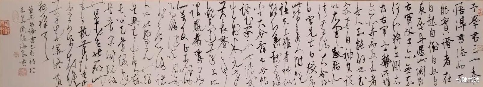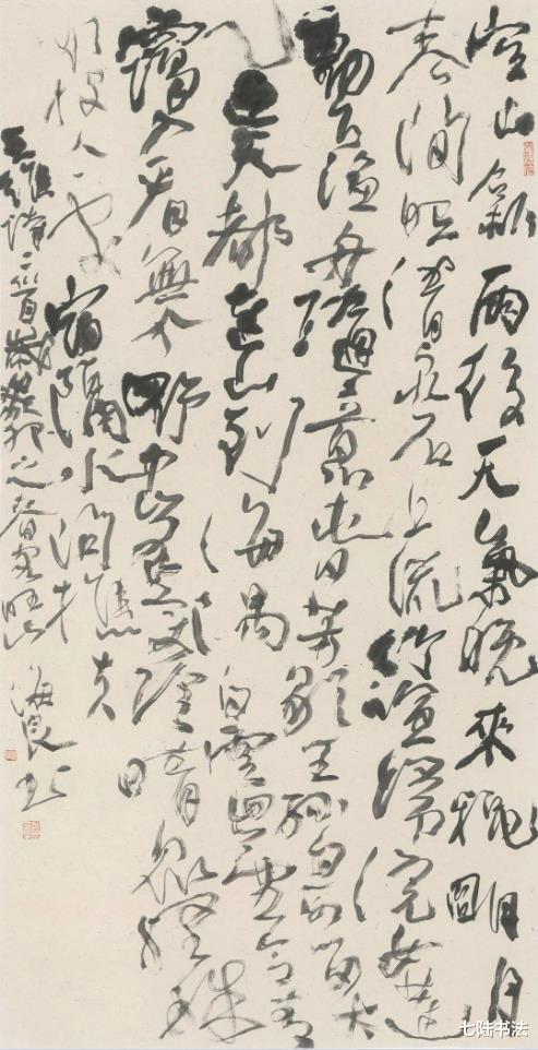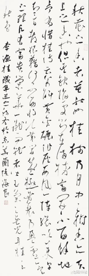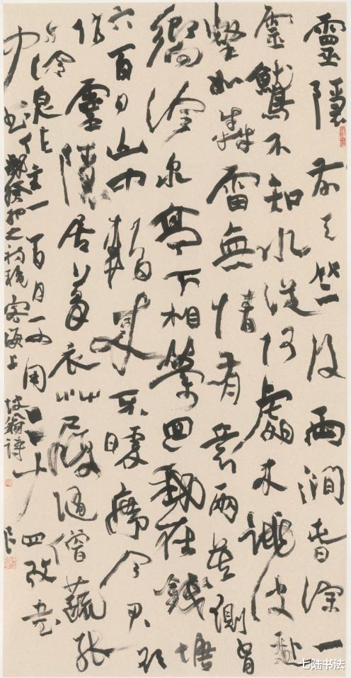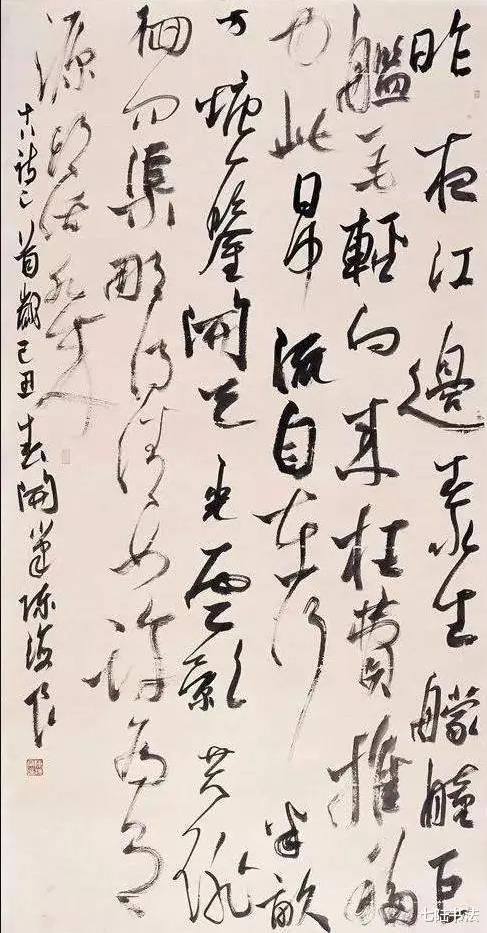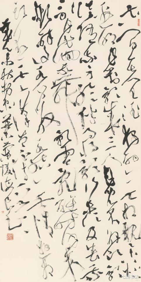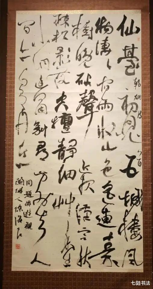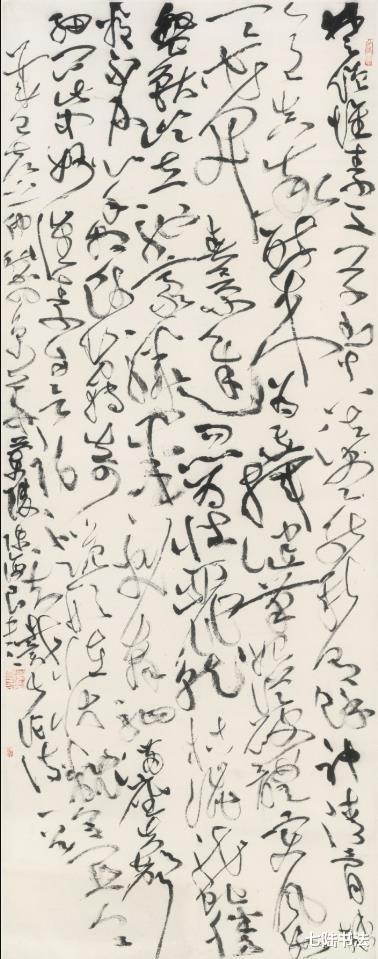 观其大草作品,如苏东坡“惊涛拍岸”之喻,气势恢宏却不狂怪,恣肆洒脱又不失法度,将草书的“气”与“势”演绎到了新的高度。