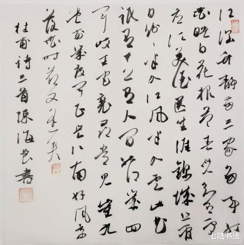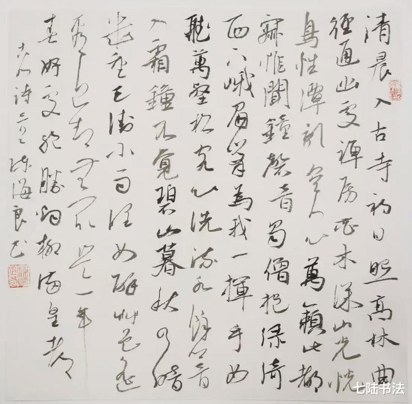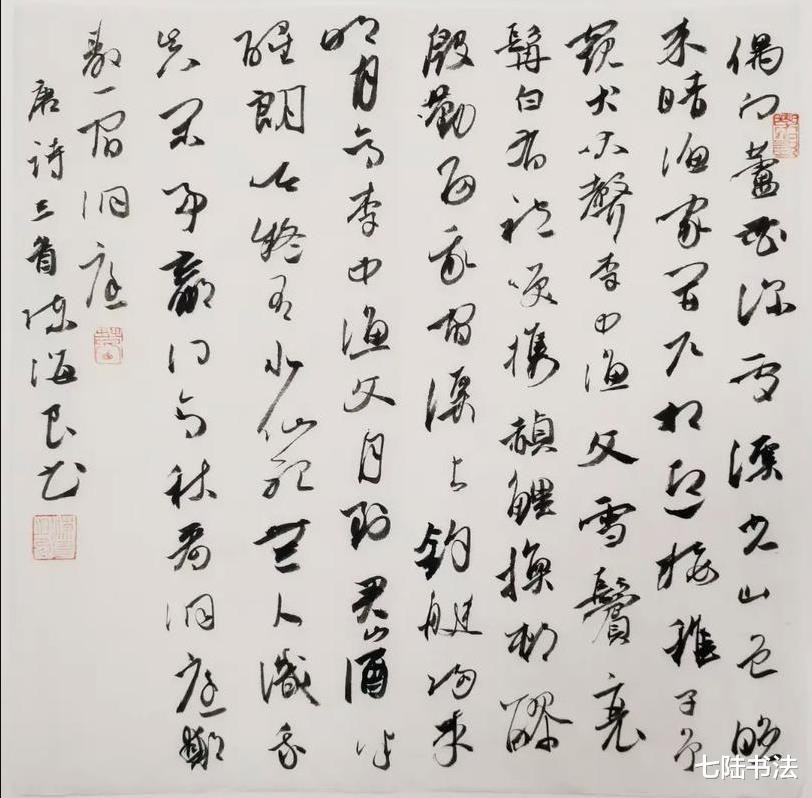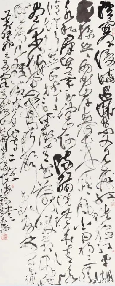 与传统书家相比,他的优势在于对书法技术要素的理性解构与创造性整合:既能精准捕捉魏晋笔法的精微,又能驾驭明清大草的气势,更能将二者融会贯通,形成鲜明的个人风格。