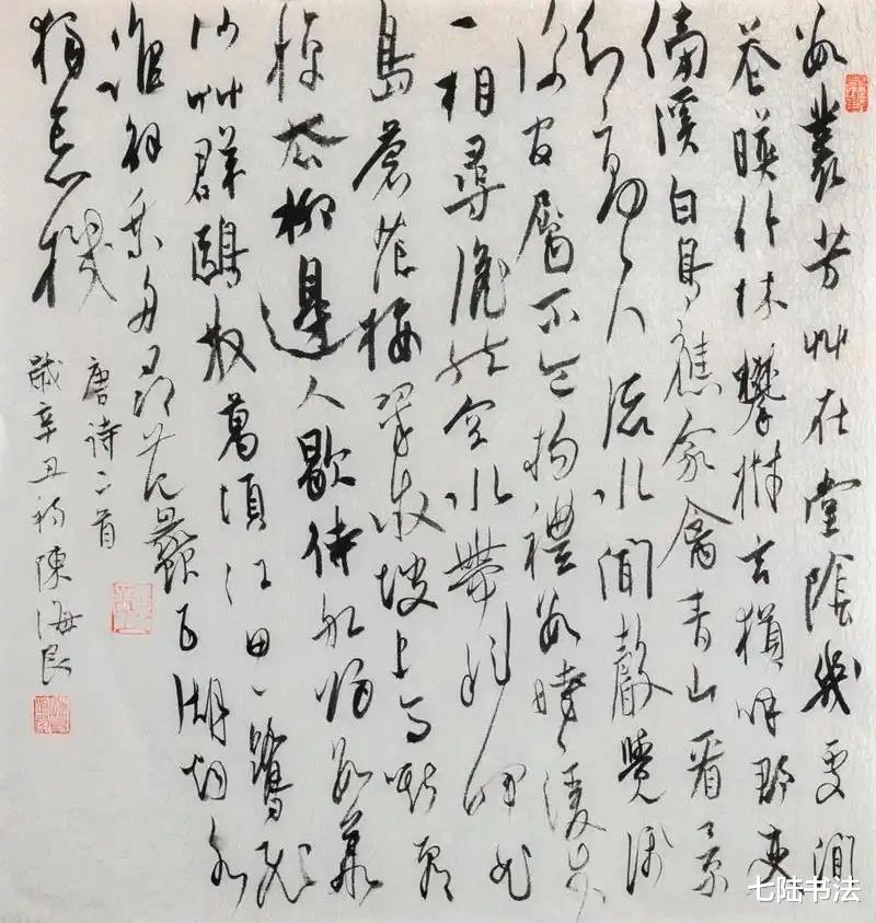 大草则是陈海良先生书法中最具个性与感染力的部分。自古以来,大草以其气势连绵、体势飞动的特质,成为最能彰显书家性情与才情的书体,却也最难驾驭。