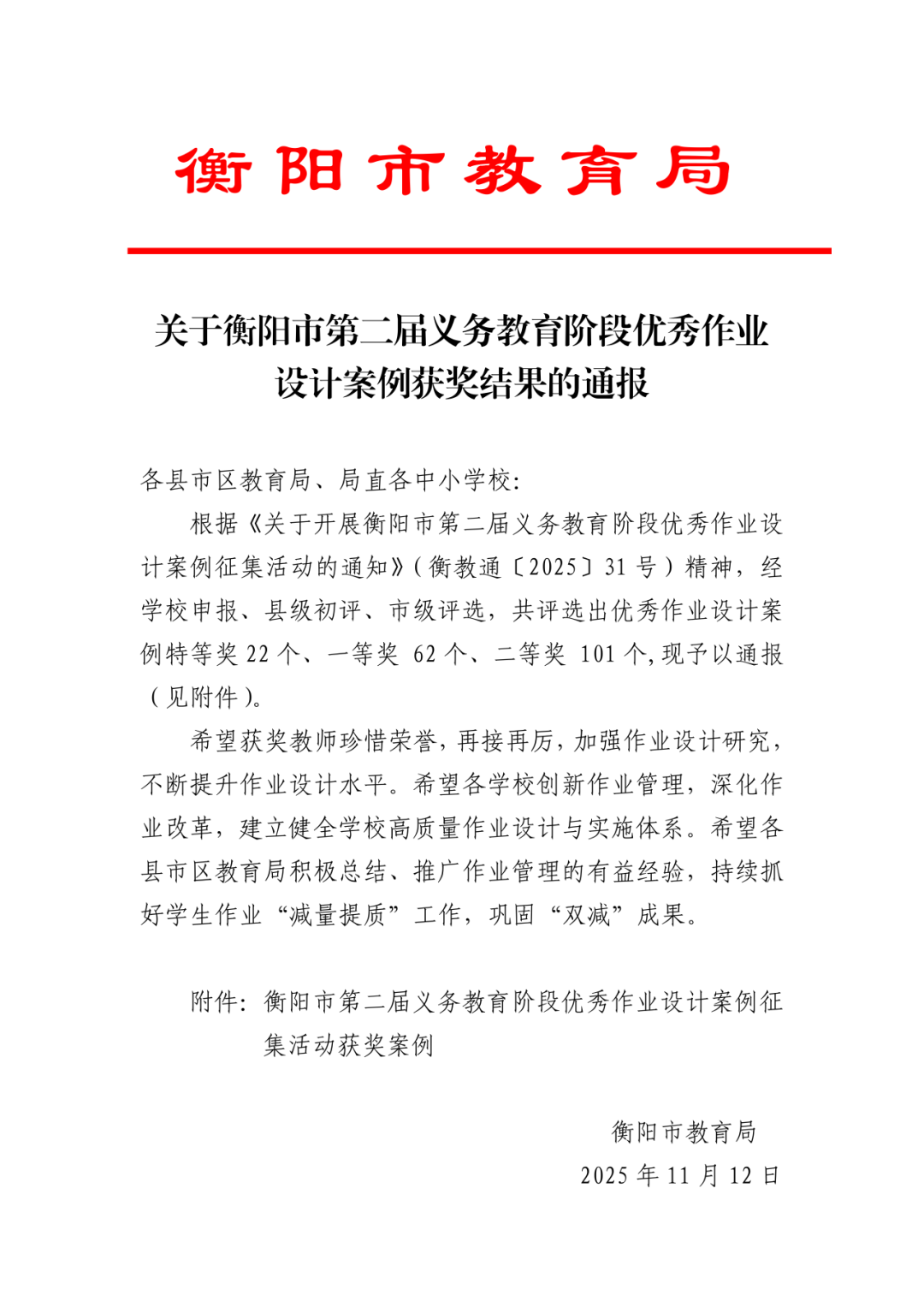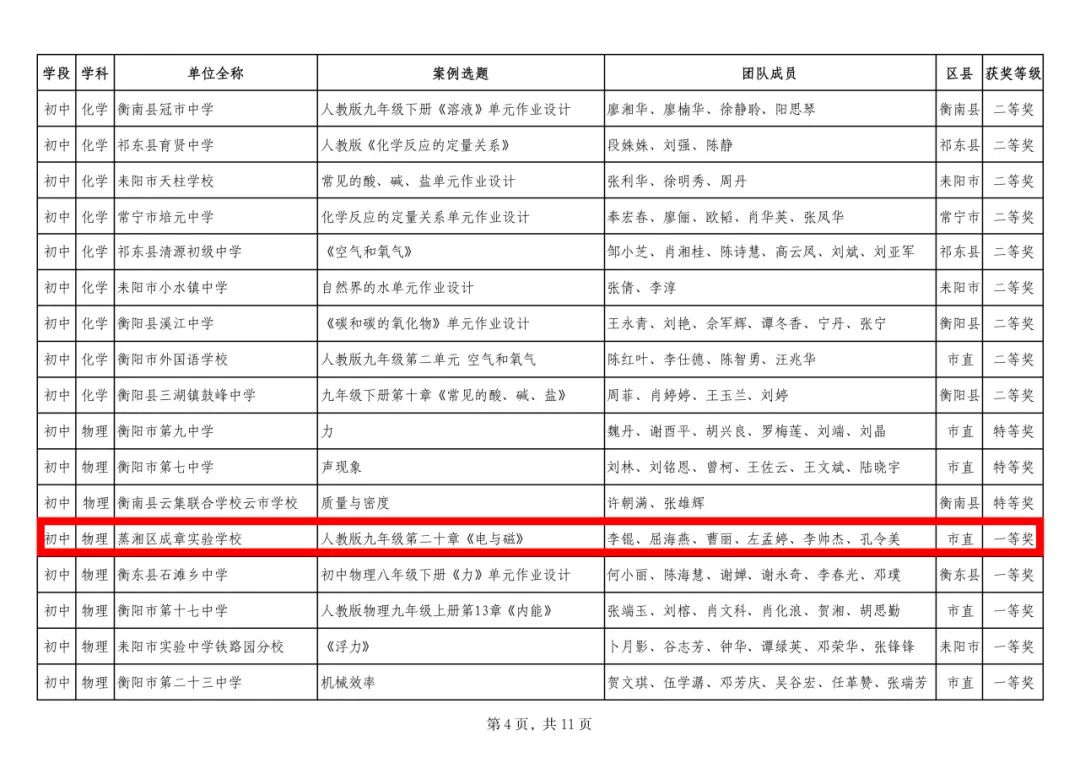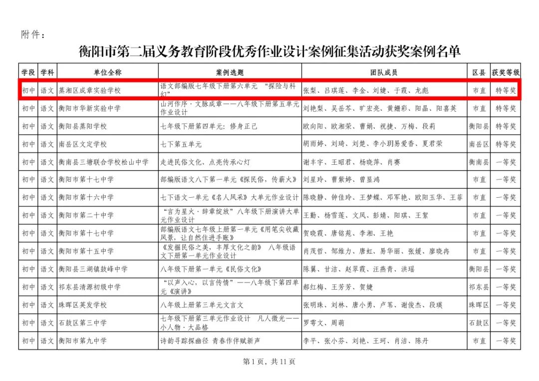 热烈祝贺蒸湘成章实验学校教师在衡阳市第二届义务教育阶段优秀作业设计案例征集活动中斩获佳绩!获奖名单如下: