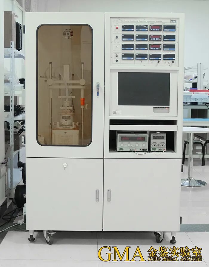 具体操作步骤是将特定厚度的方形样品精确地嵌入两热等温的平行表面之间,利用两接触面的温度差在试样上精准地施加热梯度,确保热流垂直且均衡地穿过测试表面,同时严格控制无横向热传输的发生。设备通过精准侦测流过试样的热流量以及热端面和冷端面的温度,经过严谨的计算,得出试样的热阻及导热系数。