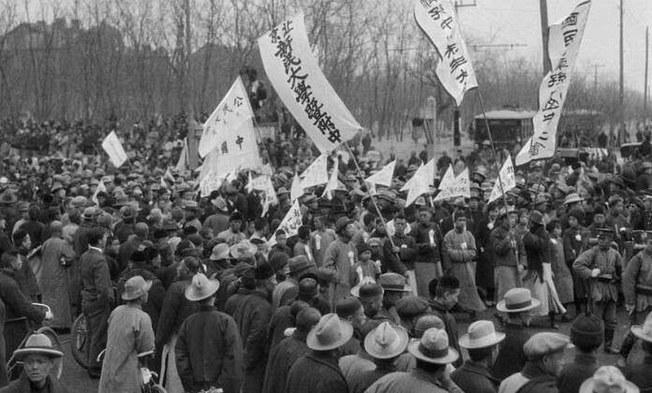学生挥舞小旗涌上街头,百姓奔走相告,压抑了近二十年的屈辱,仿佛就要在这一刻彻底释放。