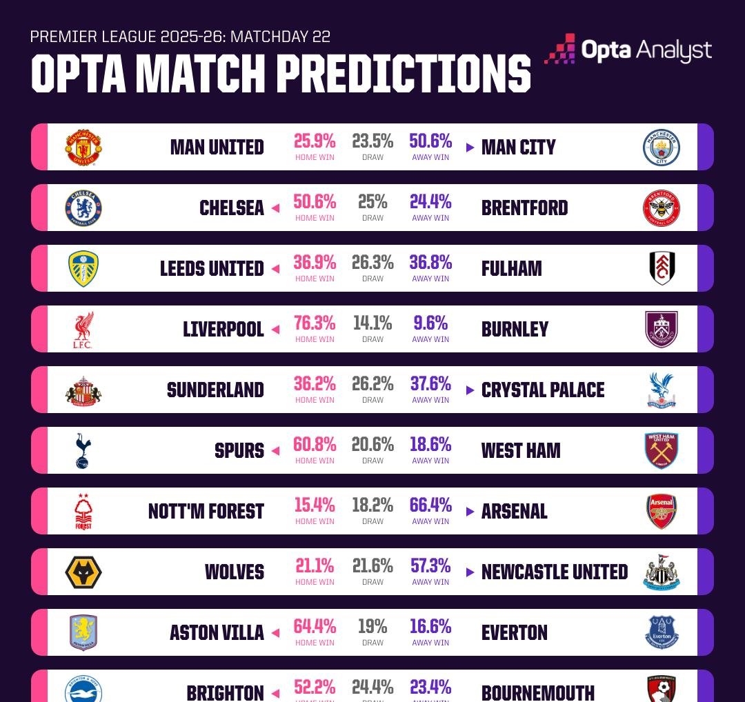 就在赛前,Sports Illustrated FC(美国体育媒体《体育画报》旗下的足球内容平台,主要提供英超、欧冠等赛事的新闻、转会动态、赛前预测及数据分析)也按照惯例发布了对于本轮英超10场比赛的比分预测。