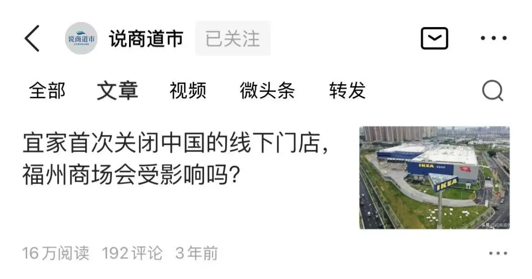 事实上,宜家在华首次撤店贵阳店时,福州城市观察者“说商道市”就提出宜家福州商场的三个硬伤,引发福州市民极大关注与热议。