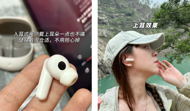 佩戴上——它是那种半入耳式的设计,不是那种硬往耳道里塞的款式。半入耳的好处就是戴着没啥压迫感,戴两三个小时不会觉得胀痛。
