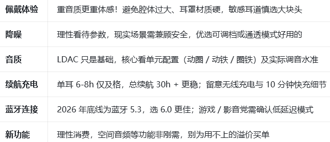 说了这么多,其实就想表达一个意思:2026年的今天,千元内的入耳式蓝牙耳机真的能给你带来不少惊喜,不再只是“听个响”的水平了,只要搞清楚自己的需求——是通勤降噪、是运动抗造、还是想好好听会儿歌——再避开我上面说的那些坑,你大概率能找到一副让你戴着舒服、听着顺耳的耳机。希望你能早点遇到那副让你“听出泪”的耳机