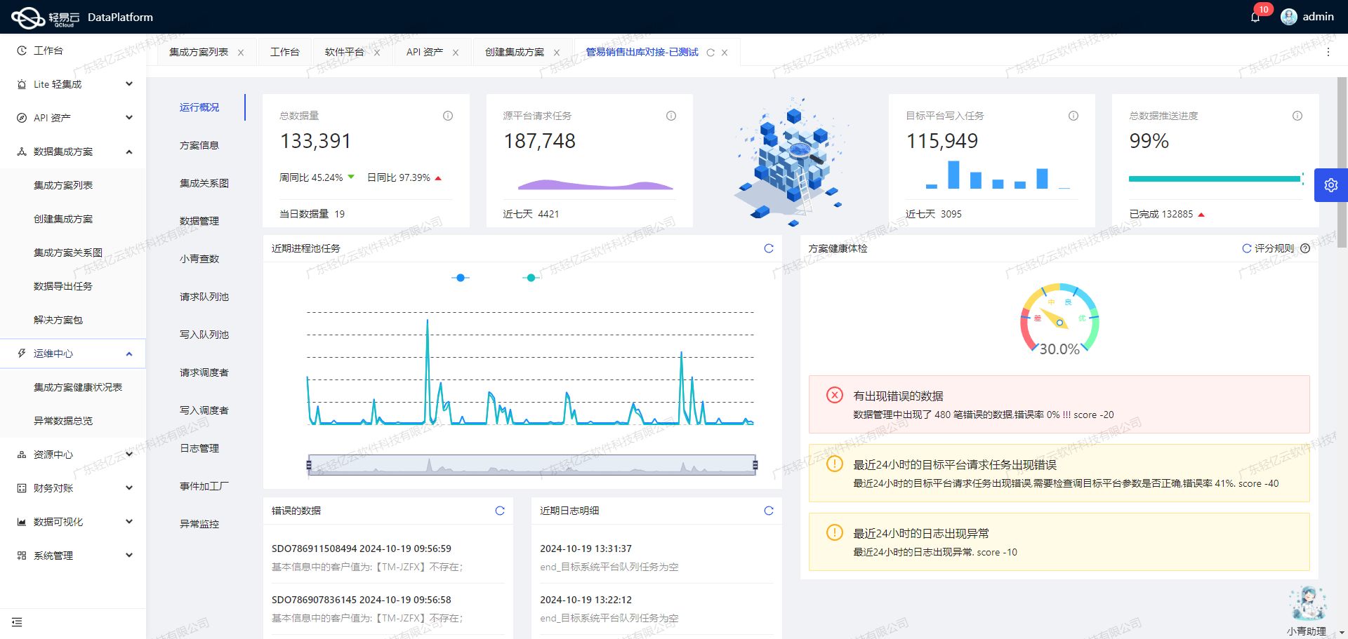 数据质量监控与优化为了进一步提升数据集成质量,可以启用数据质量监控和异常检测功能。例如,通过实时监控接口调用情况和返回结果,及时发现并修正可能存在的数据问题。此外,还可以根据业务需求定制化数据映射规则,以优化资源配置和利用效率。