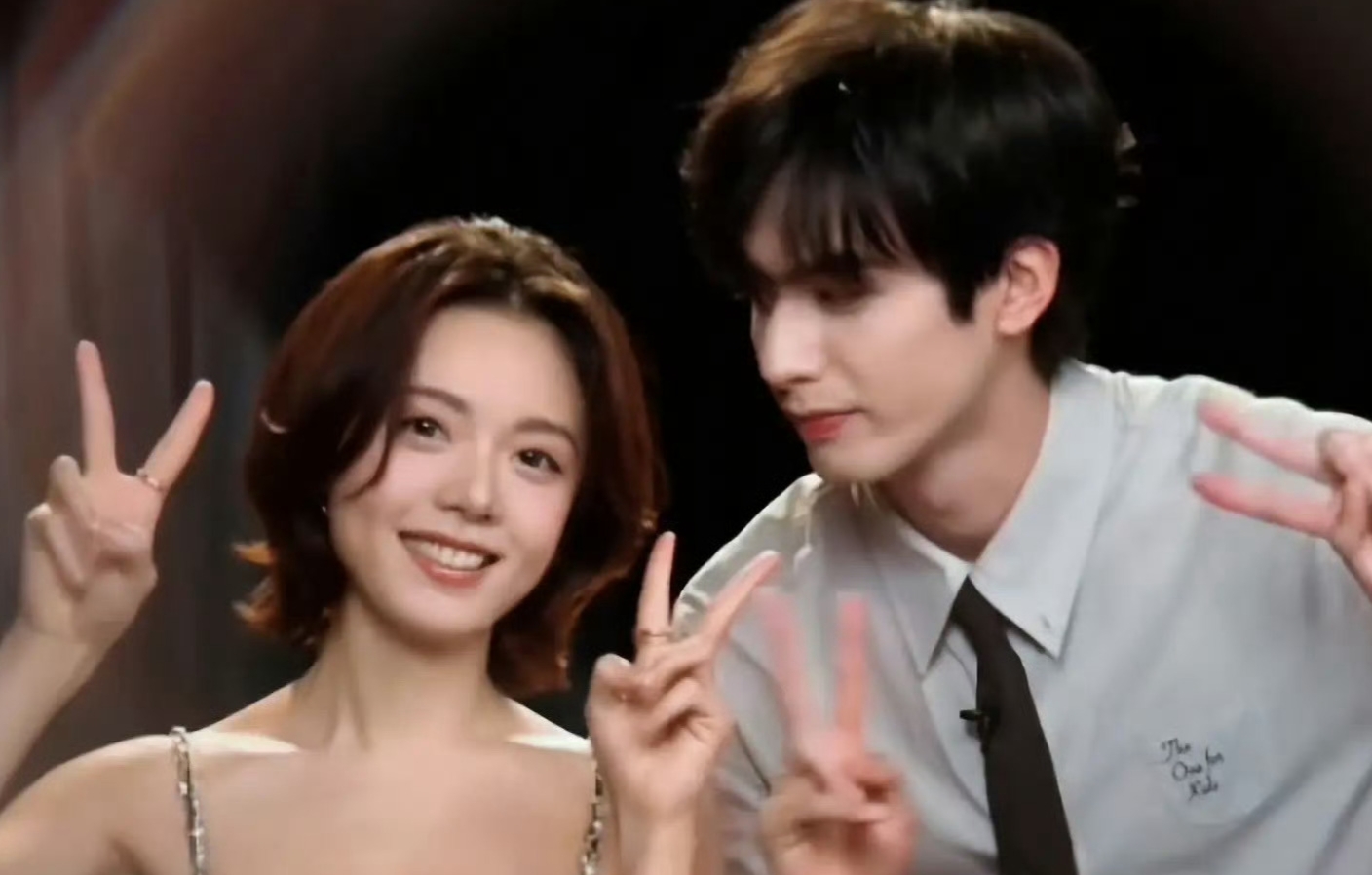 更值得玩味的是两人此前在影视作品中的合作基础。虽然他们在剧中未必是官配,但对手戏中积累的了解与信任,显然延续到了戏外。这种"熟人局"的互动往往比陌生人之间的客气寒暄更具看点,因为彼此知道对方的底线在哪里,玩笑可以开到什么程度,亲密举动可以做到哪一步。贴脸比心这样的动作,若是关系不到位便会显得尴尬油腻,但在他们做来却是行云流水,仿佛只是朋友间再自然不过的打闹。