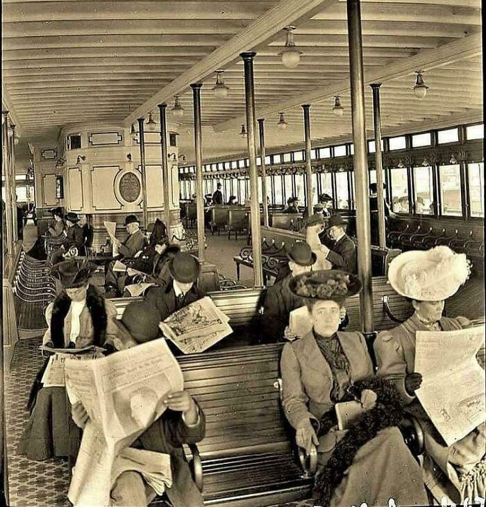 22. 1895年斯塔顿岛渡轮上的乘客在镜头前留下了他们的身影。