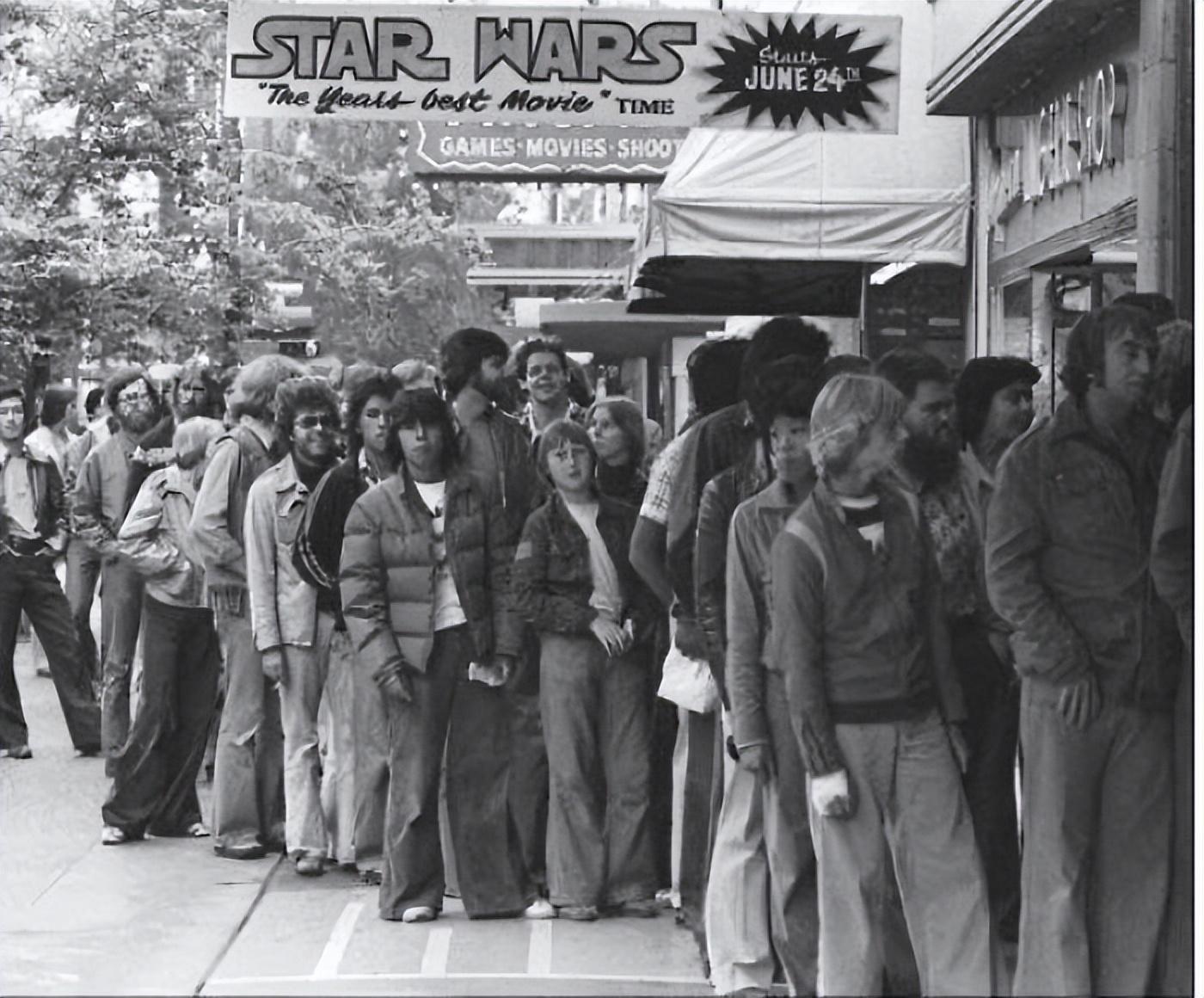 19. 《星球大战》电影首映当天,影迷们在温哥华排队等候入场观看,1977年的这一幕成为了星球大战迷们心中永恒的回忆。