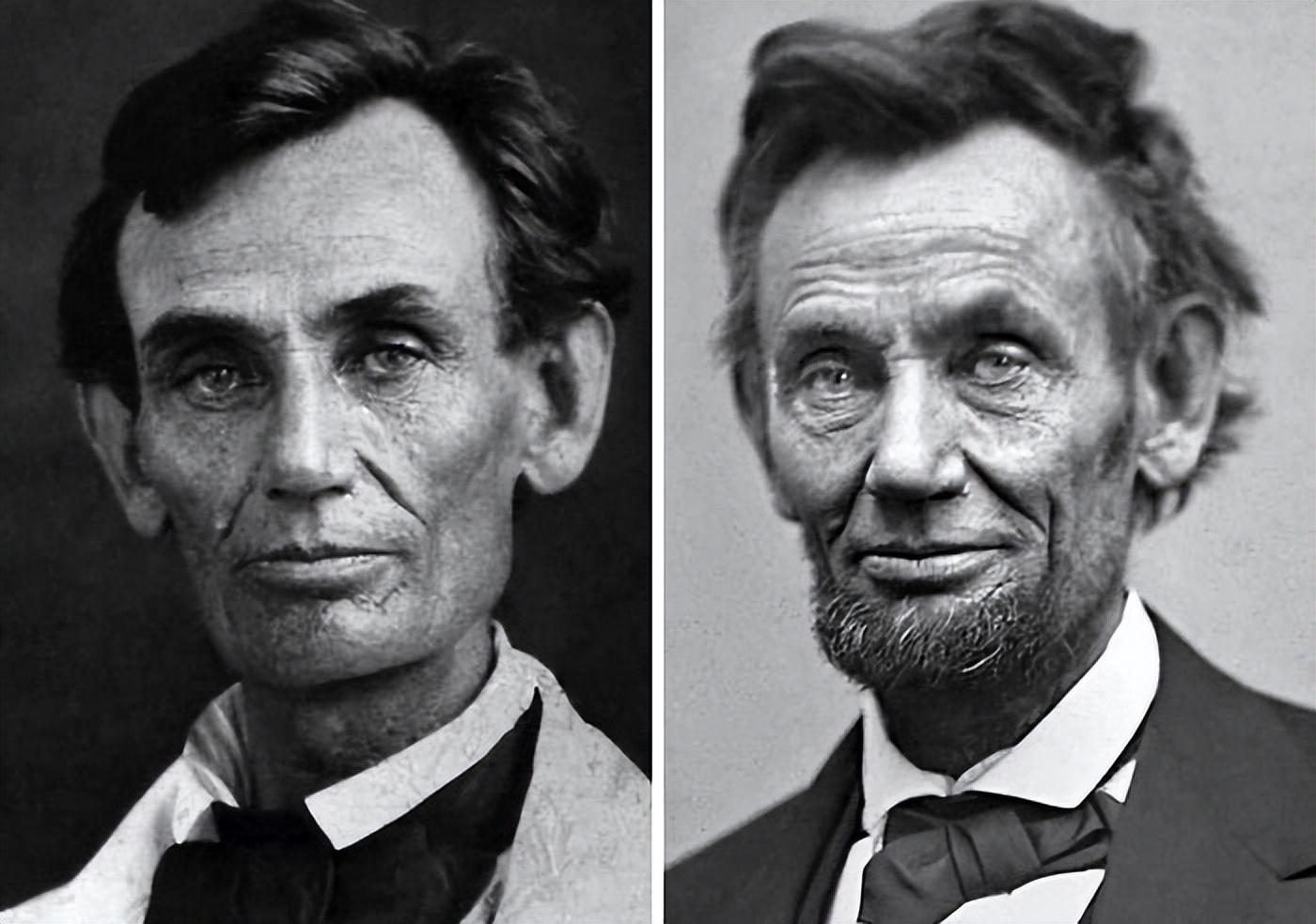 4. 亚伯拉罕·林肯在1861年和1865年。战争背景下四年的明显变化。