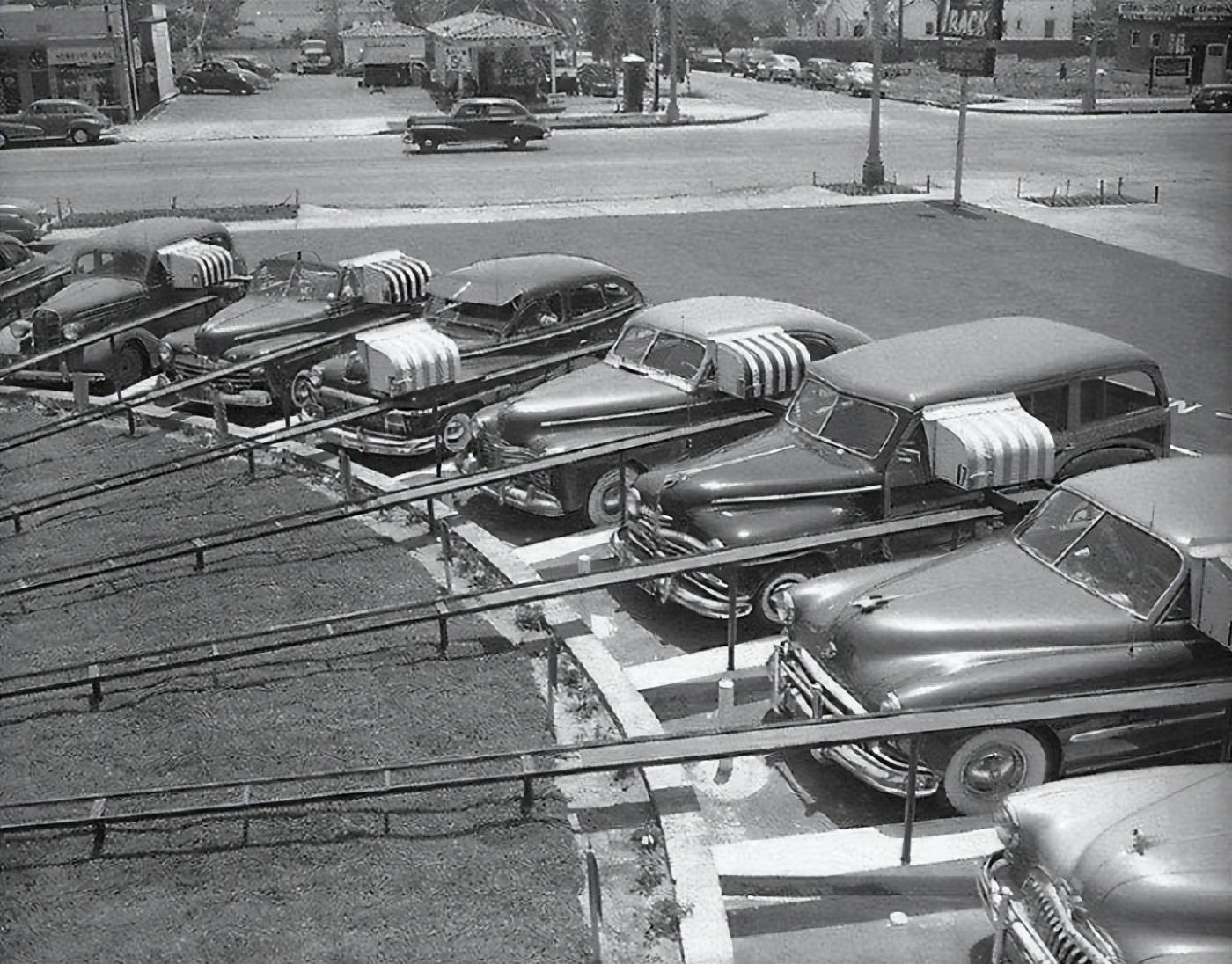 16. 在20世纪50年代的洛杉矶,赛道餐厅提供独特的服务,食物通过传送带直接送到顾客的汽车上。